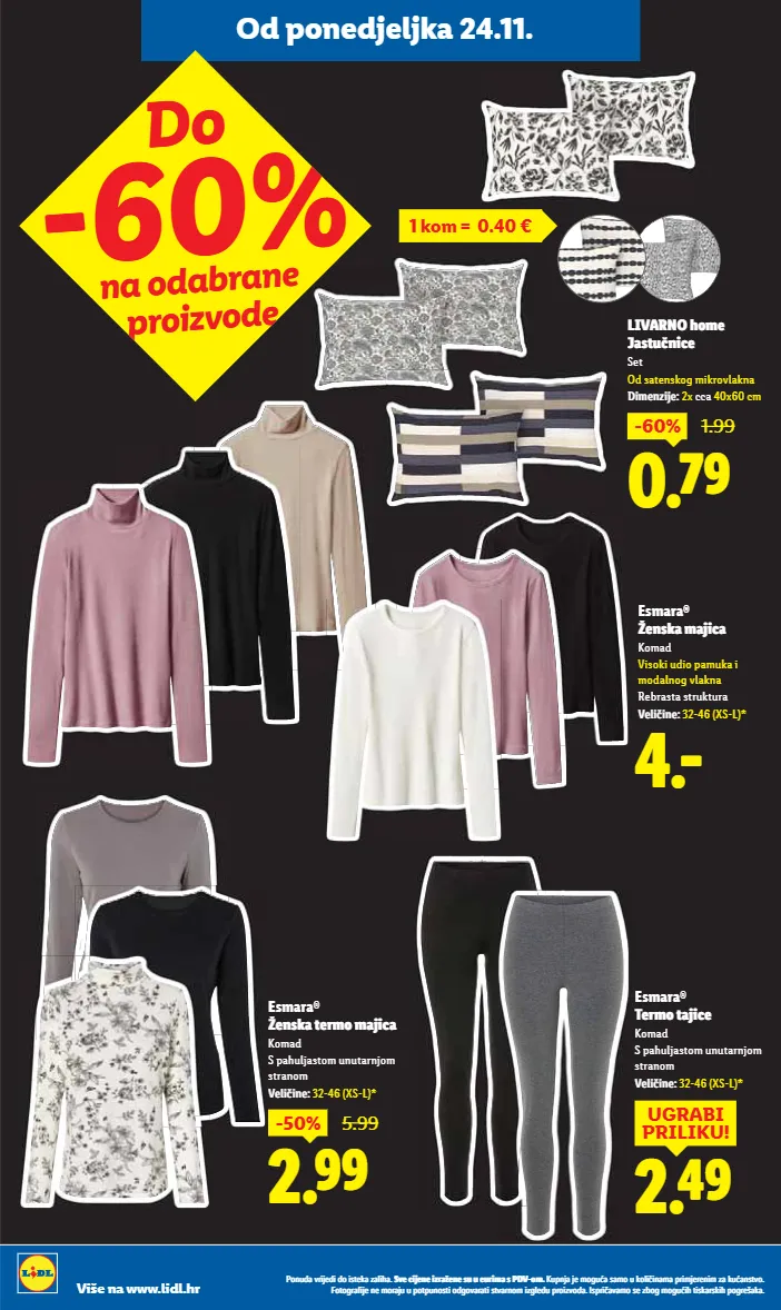 Od ponedjeljka 24.11. Do -60% na odabrane proizvode 4.- Esmara® ¨ÙóÏØÌÀ Komad Visoki udio pamuka i modalnog vlakna Rebrasta struktura t¨ÒÀ ÀÙ¨ij 32-46 (XS-L)* -50% aiÎÎ 5.99 Esmara ® ¨ÙóÏú¨ïØàØÌÀ Komad S pahuljastom unutarnjom stranom t¨ÒÀ ÀÙ¨ij 32-46 (XS-L)* Esmara ® d¨ïØàúÌÀ¨ Komad S pahuljastom unutarnjom stranom t¨ÒÀ ÀÙ¨ij 32-46 (XS-L)* aiÉÎ UGRABI PRILIKU! -60% _iÌÎ 1.99 =.tYDJ½àب 9óúÿ ÙÀ¨ Set Od satenskog mikrovlakna ÀبÙėĄ̀ij 2x cca 40x60 cm 1 kom = 0.40 € ǭàȕȡǼDzĊȝǿȋ¨ǼǿǼàǿóú¨ÏDzėDzȎǿ½Dzı ]Ċ¨ǿȋ¨ȕ¨ǿėȝDzę¨ȕ¨óȡȡ¨ȡȝǿȔDzóǭǞtƖàȔı ;ȡȜȕȋDzȋ¨Ȕà¸ȡDzóDzȔàȡÏàȎǿ ǿȕDzȔDzȜȝǿȔȋ¨ȝ¨ȕǿȔėDzÏȡDzȕóúĊàı %àúà¸ȝDz³ǿȋ¨ȕ¨ȔàȝDzȋȡȡȜàúȜȡȕàóúǿàǼ¸àĊDzȝDzúǿóúĊDzȝȕàȔǿė¸Ȏ¨ǼȡȜȝàǿėĊàǼDzıǢóȜȝǿ DzĊDzȔàó¨ėà¸Ȕà¸ȡǿ½úǿóÏDzȝóÏǿ½Ȝà¸ȝ¨õDzÏDzı Više na www.lidl.hr