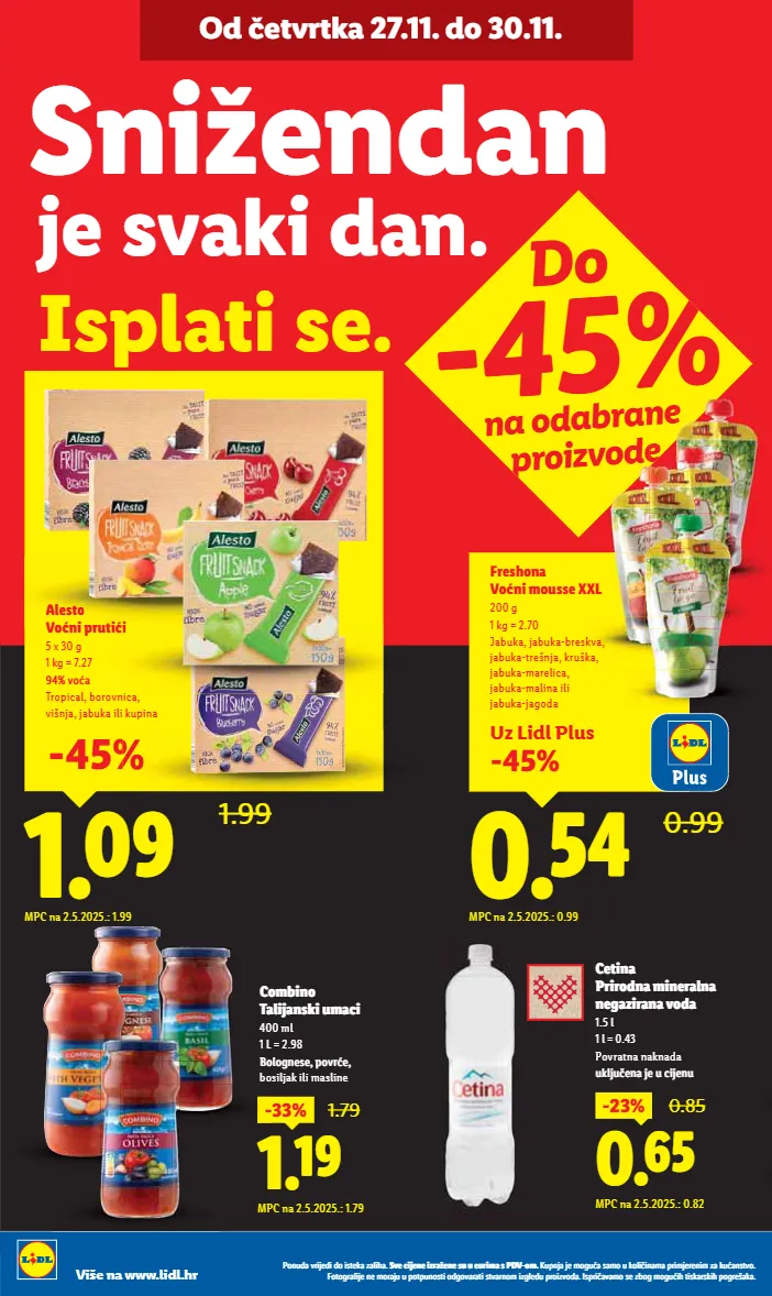 do -45% na odabrane proizvode ǭàȕȡǽdzċȝǿȋ¨ǽǿǽàǿóú¨ïdzėdzȏǿ½dzı ]ċ¨ǿȋ¨ȕ¨ǿėȝdzę¨ȕ¨óȡȡ¨ȡȝǿȕdzóǭǟtɩàȕı ;ȡȝȕȋdzȋ¨ȕà¸ȡdzódzȕàȡïàȏǿ ǿȕdzȕdzȝȝǿȕȋ¨ȝ¨ȕǿȕėdzïȡdzȕóúċàı %àúà¸ȝdz³ǿȋ¨ȕ¨ȕàȝdzȋȡȡȝàúȝȡȕàóúǿàǽ¸àċdzȝdzúǿóúċdzȝȕàȕǿė¸ȏ¨ǽȡȝȝàǿėċàǽdzıǣóȝȝǿ dzċdzȕàó¨ėà¸ȕà¸ȡǿ½úǿóïdzȝóïǿ½ȝà¸ȝ¨õdzïdzı više na www.lidl.hr j¤ ¨úċïúïɲƣıɯɯı¤àƞƛıɯɯı `iæî ɩƞƞř 1.79 mpc na 2.5.2025.: 1.79 ɩ àøàùà dòàìùóïàÿøà 400 ml 1 l = 2.98 àòà¸ù¨ó¨i̇ìàċï¨i̇ bosiljak ili masline `iåî 1.99 ò¨óúà tàùàìïÿúàà 5 x 30 g 1 kg = 7.27 ƕɛřċà tropical, borovnica, višnja, jabuka ili kupina mpc na 2.5.2025.: 1.99 ɩɵơř ò¨óúà tàùà ìïÿúàà úàà i úàà ì¨óċïà¤ùı .óìòúǿó¨ı ]ùàę¨ù¤ù ¨úàù vïàïà¤ùøàù¨ïòù ù¨¸ėàïùċठ1.5 l 1 l = 0.43 povratna naknada ÿïòìÿ ¨ùì¨ÿàì¨ùÿ _iëê ɩɲƞř 0.85 mpc na 2.5.2025.: 0.82 uz lidl plus ɩɵơř _iêé 0.99 %ï¨ó½àù tàùàøàÿóó¨zz= 200 g 1 kg = 2.70 jabuka, jabuka-breskva, jabuka-trešnja, kruška, jabuka-marelica, jabuka-malina ili jabuka-jagoda mpc na 2.5.2025.: 0.99 e e e kva, a ka o