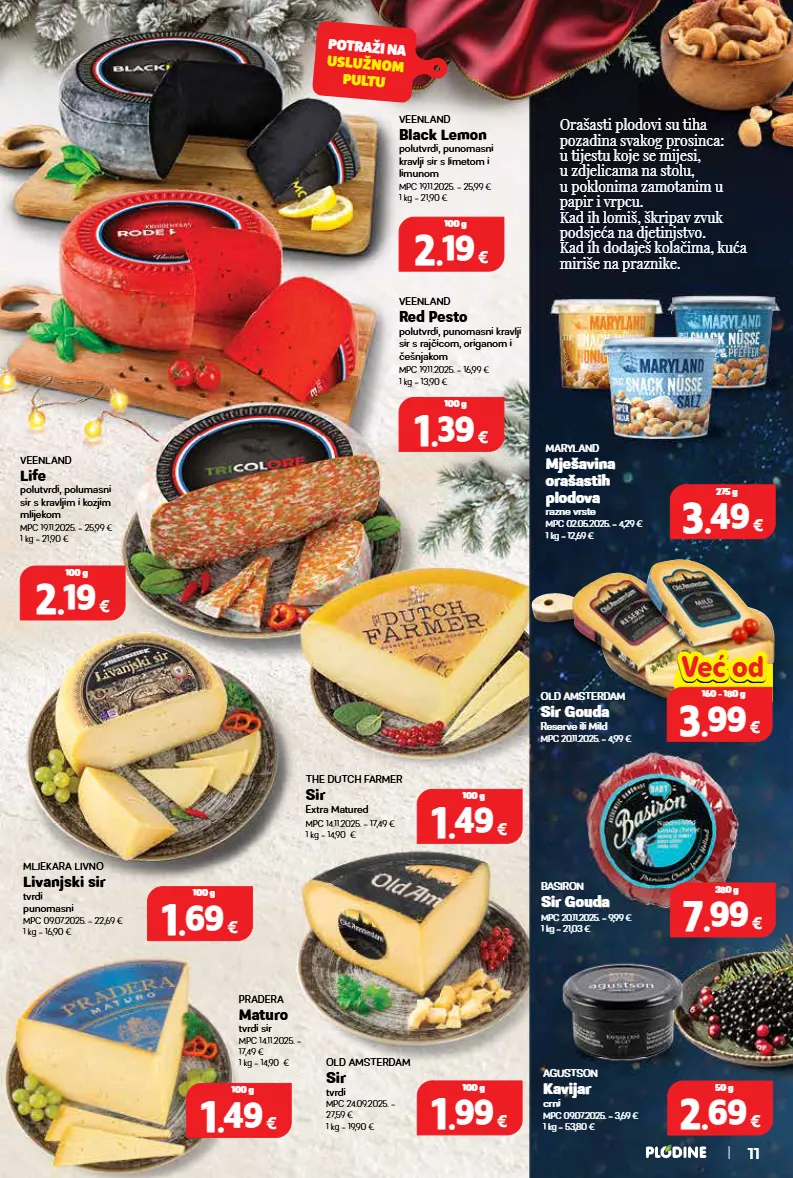 veenland black lemon polutvrdi, punomasni kravlji sir s limetom i limunom mpc 19.11.2025. = 25,99 € 1 kg = 21,90 € 2 2 . . 19 19 € 100 g 1 1 . . 39 39 € 100 g old amsterdam sir tvrdi mpc 24.09.2025. = 27,59 € 1 kg = 19,90 € 1 1 . . 99 99 € 100 g mljekara livno livanjski sir tvrdi punomasni mpc 09.07.2025. = 22,69 € 1 kg = 16,90 € 1 1 . . 69 69 € 100 g maryland mješavina orašastih plodova razne vrste mpc 02.05.2025. = 4,29 € 1 kg = 12,69 € veenland life polutvrdi, polumasni sir s kravljim i kozjim mlijekom mpc 19.11.2025. = 25,99 € 1 kg = 21,90 € 2 2 . . 19 19 € 100 g the dutch farmer sir extra matured mpc 14.11.2025. = 17,49 € 1 kg = 14,90 € 1 1 . . 49 49 € 100 g 1 1 . . 49 49 € 100 g basiron sir gouda mpc 20.11.2025. = 9,99 € 1 kg = 21,03 € 7 7 . . 99 99 € 380 g veenland red pesto polutvrdi, punomasni kravlji sir s rajčicom, origanom i češnjakom mpc 19.11.2025. = 16,99 € 1 kg = 13,90 € pradera maturo tvrdi sir mpc 14.11.2025. = 17,49 € 1 kg = 14,90 € agustson kavijar crni mpc 09.07.2025. = 3,69 € 1 kg = 53,80 € 3 3 . . 49 49 € 275 g 2 2 . . 69 69 € 50 g orašasti plodovi su tiha pozadina svakog prosinca: u tijestu koje se mijesi, u zdjelicama na stolu, u poklonima zamotanim u papir i vrpcu. kad ih lomiš, škripav zvuk podsjeća na djetinjstvo. kad ih dodaješ kolačima, kuća miriše na praznike. old amsterdam sir gouda reserve ili mild mpc 20.11.2025. = 4,99 € top cijena! već od hit cijena! 3 3 . . 99 99 € 160 - 180 g već od već od potraži na uslužnom pultu 11