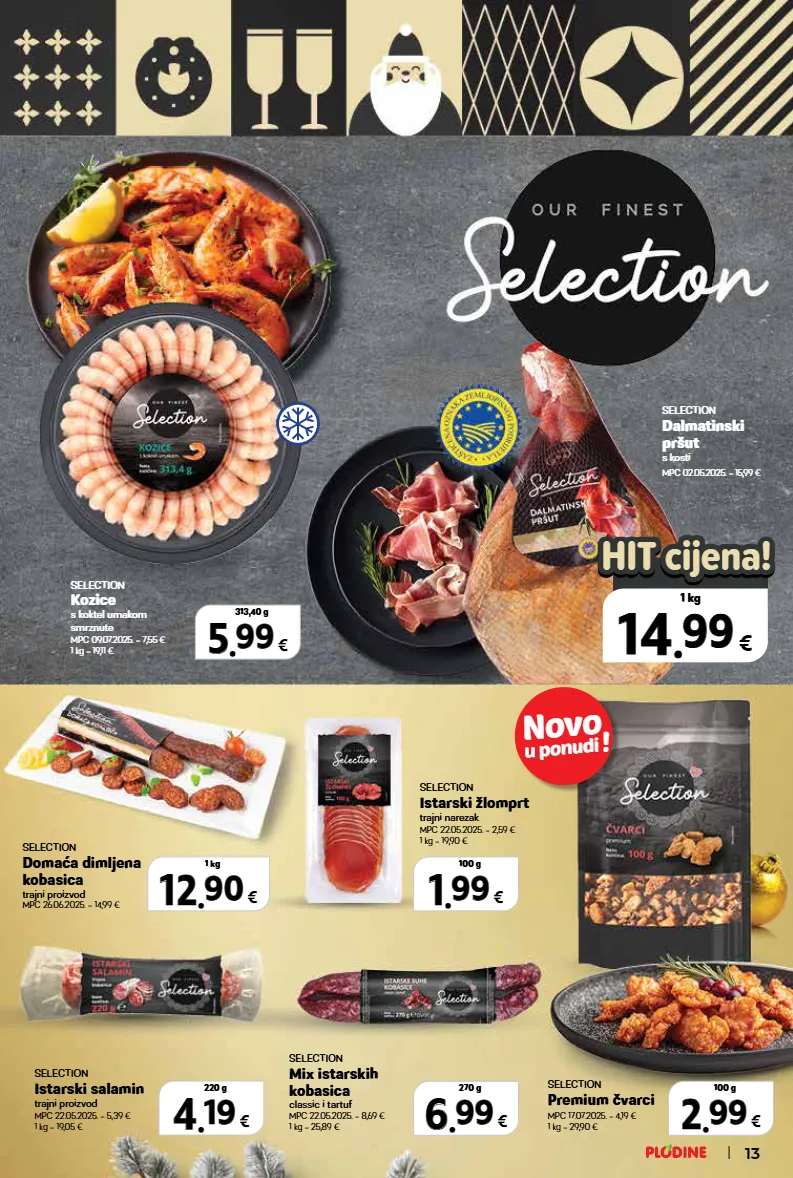 selection istarski salamin trajni proizvod mpc 22.05.2025. = 5,39 € 1 kg = 19,05 € selection domaća dimljena kobasica trajni proizvod mpc 26.06.2025. = 14,99 € selection mix istarskih kobasica classic i tartuf mpc 22.05.2025. = 8,69 € 1 kg = 25,89 € selection dalmatinski pršut s kosti mpc 02.05.2025. = 15,99 € selection istarski žlomprt trajni narezak mpc 22.05.2025. = 2,59 € 1 kg = 19,90 € 1 1 . . 99 99 € 100 g 4 4 . . 19 19 € 220 g 6 6 . . 99 99 € 270 g selection premium čvarci mpc 17.07.2025. = 4,19 € 1 kg = 29,90 € 2 2 . . 99 99 € 100 g top cijena! već od hit cijena! 14 14 . . 99 99 € 1 kg hit hit cijena! cijena! 12 12 . . 90 90 € 1 kg selection kozice s koktel umakom smrznute mpc 09.07.2025. = 7,55 € 1 kg = 19,11 € 5 5 . . 99 99 € 313,40 g novo u ponudi ! 13