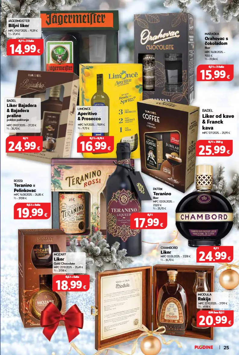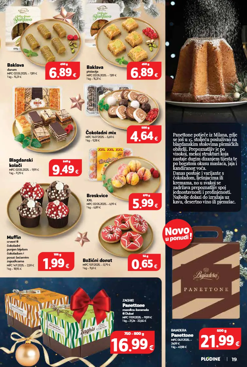 ponuda vrijedi od srijede 26.11. do srijede 31.12.2025. ili do isteka zaliha. sve cijene su izražene u eurima s pdv-om. kupovina je moguća samo u količinama predviđenim za kućanstvo. fotografije ne moraju u potpunosti odgovarati stvarnom izgledu proizvoda. ispričavamo se zbog mogućih tiskarskih pogrešaka. ponuda vrijedi od srijede 26.11. do 31.12. top cijena! već od hit cijena! 19 19 . . 99 99 € 2x 0,75 l hit hit cijena! cijena! 2 x 0,75 l selection panettone punjem kremom od pistacija mpc 20.10.2025. = 10,99 € 1 kg = 13,05 € 750 g blagdanske delicije zajedno stvaramo blagdanske uspomene mionetto proseco treviso brut pjenušavo vino mpc 17.11.2025. = 23,00 € 1 l = 13,33 € 9 9 . . 79 79 € 750 g hit hit cijena! cijena!