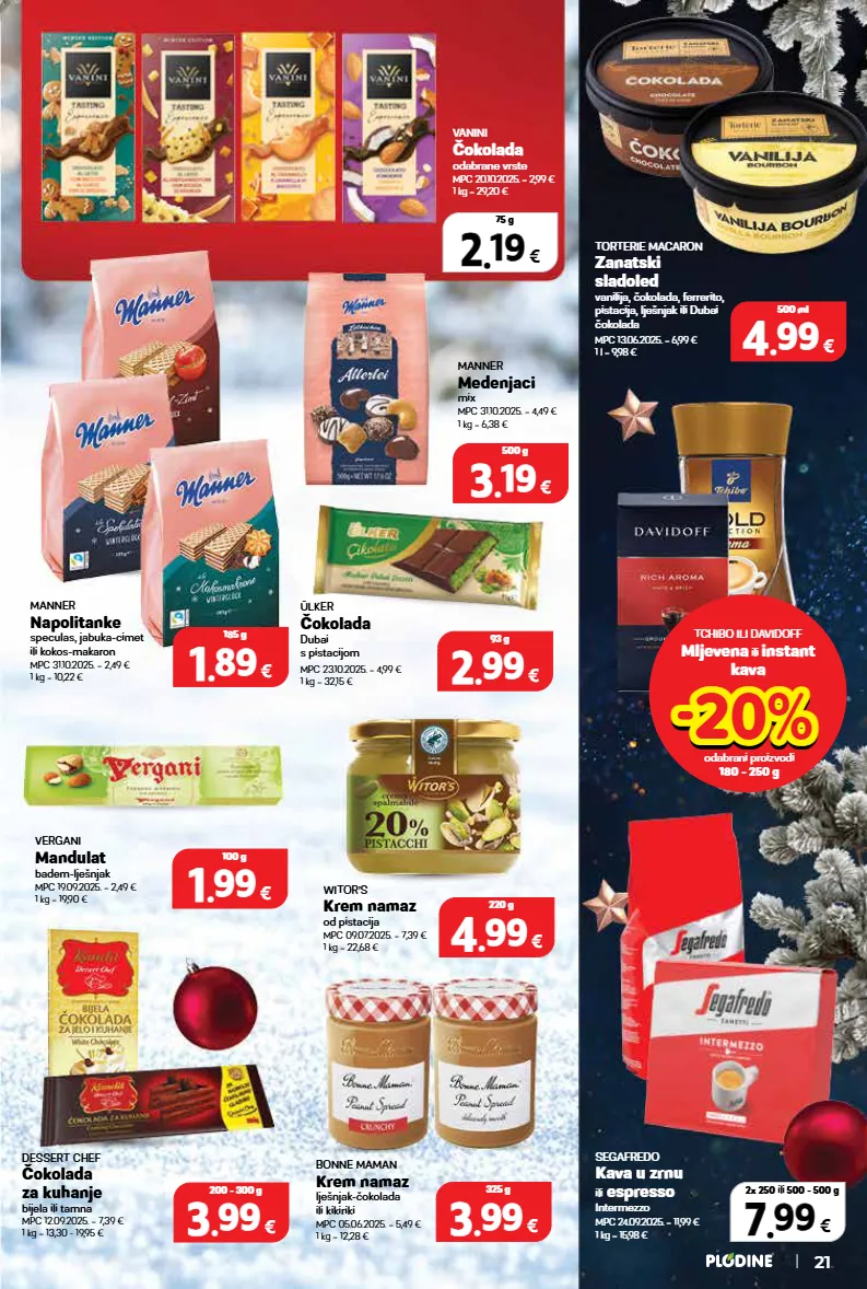 dessert chef čokolada za kuhanje bijela ili tamna mpc 12.09.2025. = 7,39 € 1 kg = 13,30 - 19,95 € 3 3 . . 99 99 € 200 - 300 g manner napolitanke speculas, jabuka-cimet ili kokos-makaron mpc 31.10.2025. = 2,49 € 1 kg = 10,22 € 1 1 . . 89 89 € 185 g torterie macaron zanatski sladoled vanilija, čokolada, ferrerito, pistacija, lješnjak ili dubai čokolada mpc 13.06.2025. = 6,99 € 1 l = 9,98 € 4 4 . . 99 99 € 500 ml manner medenjaci mix mpc 31.10.2025. = 4,49 € 1 kg = 6,38 € 3 3 . . 19 19 € 500 g vergani mandulat badem-lješnjak mpc 19.09.2025. = 2,49 € 1 kg = 19,90 € 1 1 . . 99 99 € 100 g segafredo kava u zrnu ili espresso intermezzo mpc 24.09.2025. = 11,99 € 1 kg = 15,98 € vanini čokolada odabrane vrste mpc 20.10.2025. = 2,99 € 1 kg = 29,20 € ülker čokolada dubai s pistacijom mpc 23.10.2025. = 4,99 € 1 kg = 32,15 € 2 2 . . 99 99 € 93 g witor’s krem namaz od pistacija mpc 09.07.2025. = 7,39 € 1 kg = 22,68 € 4 4 . . 99 99 € 220 g bonne maman krem namaz lješnjak-čokolada ili kikiriki mpc 05.06.2025. = 5,49 € 1 kg = 12,28 € 3 3 . . 99 99 € 325 g 7 7 . . 99 99 € 2x 250 ili 500 - 500 g 2 2 . . 19 19 € 75 g -20% -20% tchibo ili davidoff mljevena ili instant kava odabrani proizvodi 180 - 250 g 21