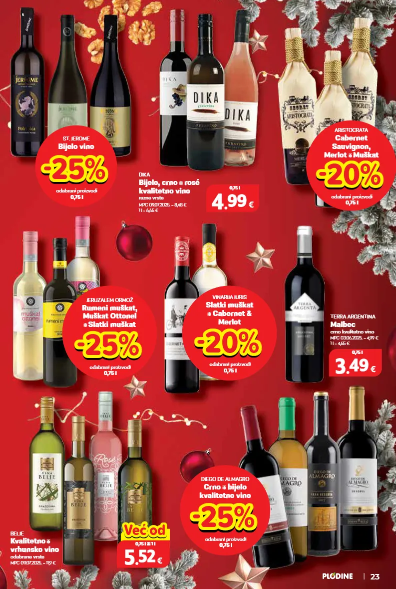 terra argentina malbec crno kvalitetno vino mpc 03.06.2025. = 4,99 € 1 l = 4,65 € belje kvalitetno ili vrhunsko vino odabrane vrste mpc 09.07.2025. = 11,9 € top cijena! već od hit cijena! 5 5 . . 52 52 € 0,75 l ili 1 l već od već od -25% -25% st. jerome bijelo vino odabrani proizvodi 0,75 l -20% -20% vinarija iuris slatki muškat ili cabernet & merlot odabrani proizvodi 0,75 l -25% -25% diego de almagro crno ili bijelo kvalitetno vino odabrani proizvodi 0,75 l -25% -25% jeruzalem ormož rumeni muškat, muškat ottonel ili slatki muškat odabrani proizvodi 0,75 l -20% -20% aristocrata cabernet sauvignon, merlot ili muškat odabrani proizvodi 0,75 l 3 3 . . 49 49 € 0,75 l dika bijelo, crno ili rosé kvalitetno vino razne vrste mpc 09.07.2025. = 8,48 € 1 l = 6,65 € 4 4 . . 99 99 € 0,75 l 23