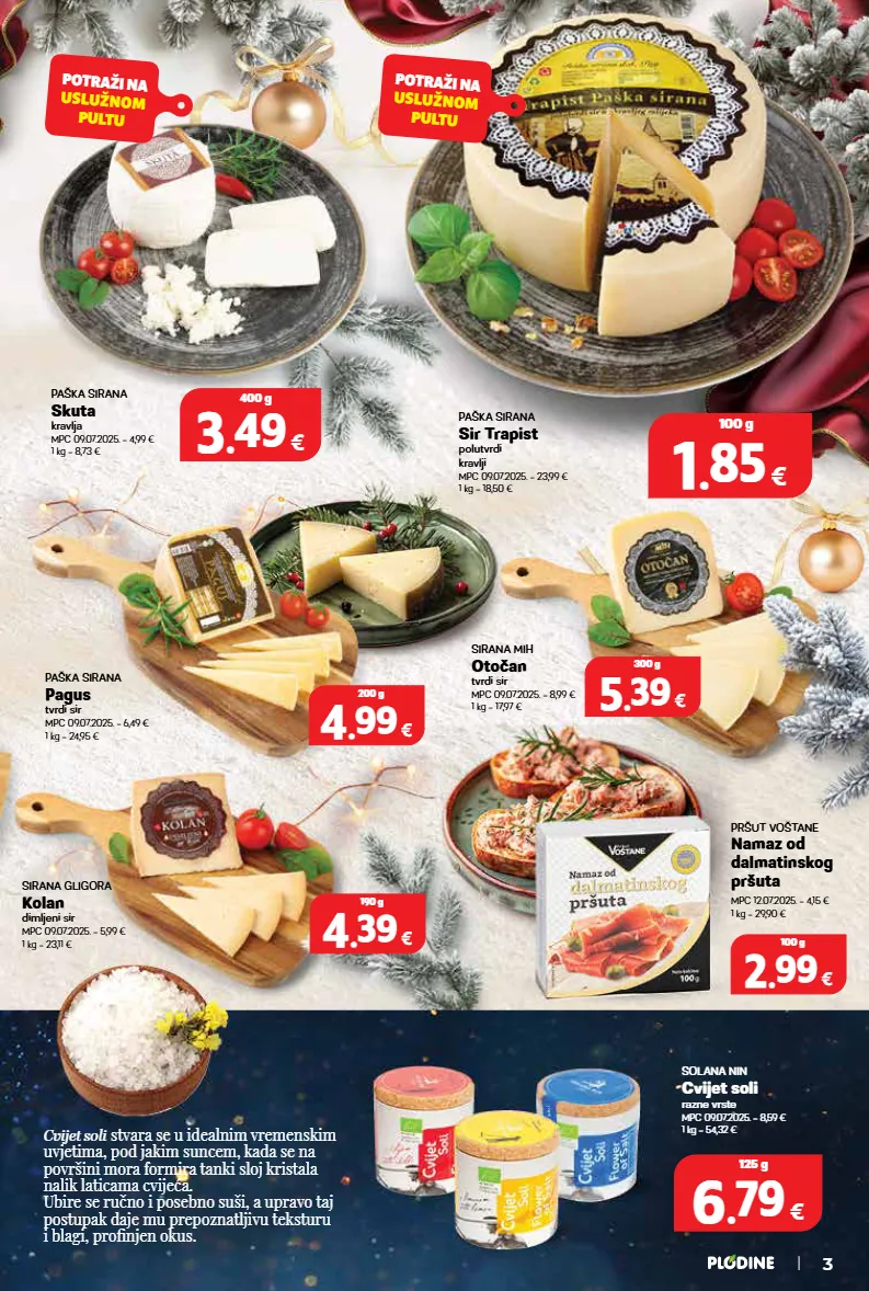 paška sirana skuta kravlja mpc 09.07.2025. = 4,99 € 1 kg = 8,73 € 3 3 . . 49 49 € 400 g solana nin cvijet soli razne vrste mpc 09.07.2025. = 8,59 € 1 kg = 54,32 € 6 6 . . 79 79 € 125 g cvijet soli stvara se u idealnim vremenskim uvjetima, pod jakim suncem, kada se na površini mora formira tanki sloj kristala nalik laticama cvijeća. ubire se ručno i posebno suši, a upravo taj postupak daje mu prepoznatljivu teksturu i blagi, profinjen okus. sirana mih otočan tvrdi sir mpc 09.07.2025. = 8,99 € 1 kg = 17,97 € 5 5 . . 39 39 € 300 g sirana gligora kolan dimljeni sir mpc 09.07.2025. = 5,99 € 1 kg = 23,11 € 4 4 . . 39 39 € 190 g paška sirana pagus tvrdi sir mpc 09.07.2025. = 6,49 € 1 kg = 24,95 € 4 4 . . 99 99 € 200 g paška sirana sir trapist polutvrdi kravlji mpc 09.07.2025. = 23,99 € 1 kg = 18,50 € 1 1 . . 85 85 € 100 g potraži na uslužnom pultu potraži na uslužnom pultu pršut voštane namaz od dalmatinskog pršuta mpc 12.07.2025. = 4,15 € 1 kg = 29,90 € 2 2 . . 99 99 € 100 g 3