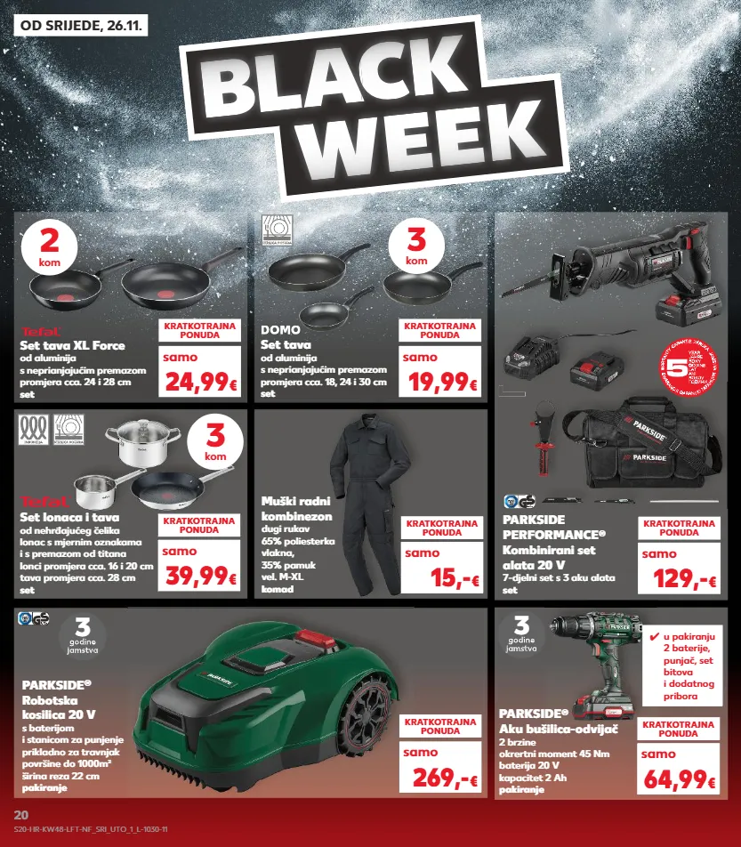 parkside performance ® kombinirani set alata 20 v 7-djelni set s 3 aku alata set kratkotrajna ponuda samo 129,- € set lonaca i tava od nehrđajućeg čelika lonac s mjernim oznakama i s premazom od titana lonci promjera cca. 16 i 20 cm tava promjera cca. 28 cm set kratkotrajna ponuda samo 39,99 € 3 kom od srijede, 26.11. bl a c a c a k week domo set tava od aluminija s neprianjajućim premazom promjera cca. 18, 24 i 30 cm set ✓ u pakiranju 2 baterije, punjač, set bitova i dodatnog pribora parkside ® aku bušilica-odvijač 2 brzine okrertni moment 45 nm baterija 20 v kapacitet 2 ah pakiranje 3 kratkotrajna ponuda samo 64,99 € parkside ® robotska kosilica 20 v s baterijom i stanicom za punjenje prikladno za travnjak površine do 1000m² širina reza 22 cm pakiranje kratkotrajna ponuda samo 269,- € 3 domo 3 kom set tava xl force od aluminija s neprianjajućim premazom promjera cca. 24 i 28 cm set kratkotrajna ponuda samo 24,99 € kratkotrajna ponuda samo 19,99 € 2 kom muški radni kombinezon dugi rukav 65% poliesterka vlakna, 35% pamuk vel. m-xl komad kratkotrajna ponuda samo 15,- € s20-hr-kw48-lft-nf_sri_uto_1_l-1030-11 20