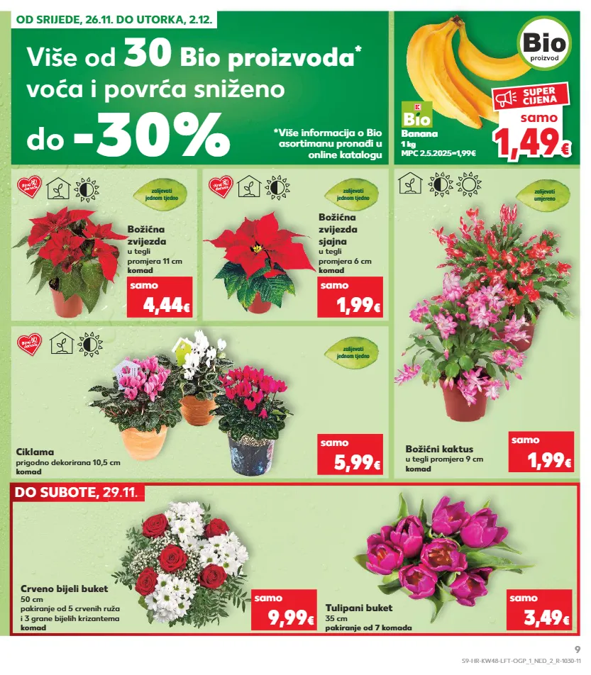 od srijede, 26.11. do utorka, 2.12. do subote, 29.11. 29.11. 29.11. 29.11. banana 1 kg mpc 2.5.2025=1,99€ ciklama prigodno dekorirana 10,5 cm komad zalijevati jednom tjedno samo 5,99 € crveno bijeli buket 50 cm pakiranje od 5 crvenih ruža i 3 grane bijelih krizantema komad tulipani buket 35 cm pakiranje od 7 komada samo samo 9,99 € 3,49 € božićna zvijezda u tegli promjera 11 cm komad božićna zvijezda sjajna u tegli promjera 6 cm komad zalijevati jednom tjedno zalijevati jednom tjedno samo samo božićni kaktus u tegli promjera 9 cm komad zalijevati umjereno samo 1,99 € 4,44 € 1,99 € više od 30 bio proizvoda * voća i povrća sniženo *više informacija o bio asortimanu pronađi u online katalogu -30% do 1,4 9 1,49 € € samo super cijena s9-hr-kw48-lft-ogp_1_ned_2_r-1030-11 9