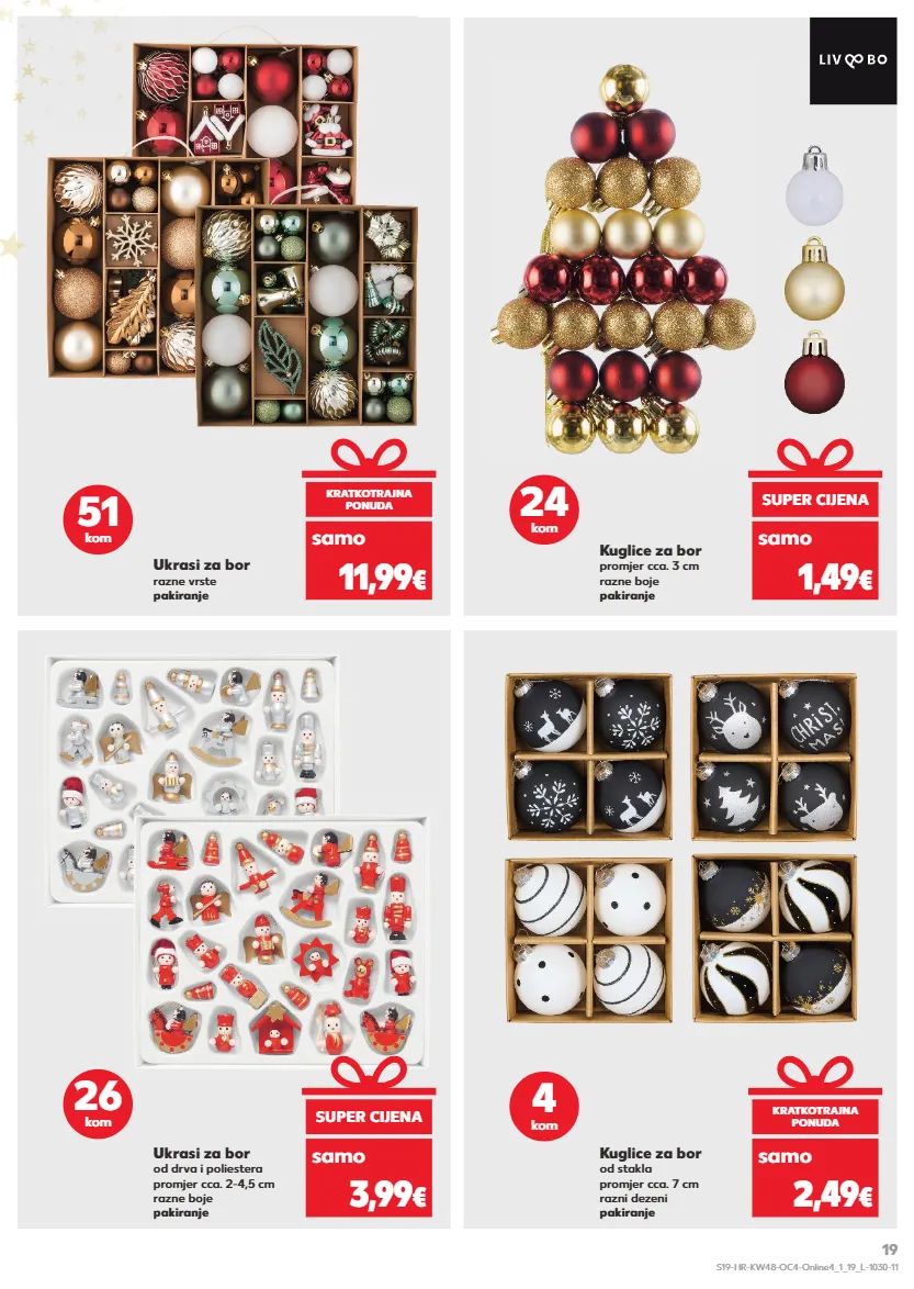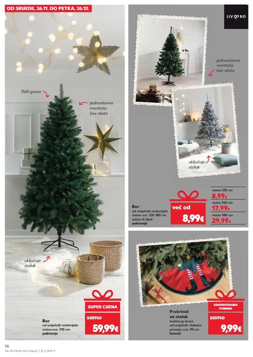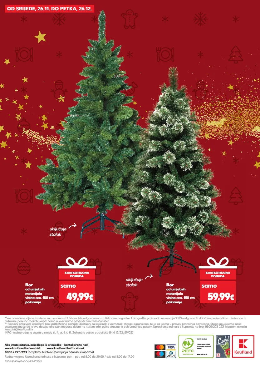 59,99 € samo KRATKOTRAJNA PONUDA 49,99 € samo KRATKOTRAJNA PONUDA Bor od umjetnih materijala visina cca. 150 cm pakiranje Bor od umjetnih materijala visina cca. 180 cm pakiranje uključuje stalak uključuje stalak *Sve navedene cijene izražene su u eurima s PDV-om. Ne odgovaramo za tiskarske pogreške. Fotografije proizvoda ne moraju 100% odgovarati dotičnim proizvodima. Proizvode iz aktualne ponude možete kupiti samo u količinama predviđenim za kućanstvo. **Pojedini proizvodi označeni kao kratkotrajna ponuda dostupni su količinski i vremenski strogo ograničeno, te je za istima u pravilu potražnja povećana. Stoga upućujemo naše cijenjene kupce da je sve detalje oko istih moguće dobiti na našem info-pultu izravno, ili pak unaprijed putem Upravljanja odnosa s kupcima, na broj 0800/223 223 ili putem e.maila kontakt@kaufland.hr MPC=maloprodajna cijena u smislu čl. 4. st. 1. t. 11. Zakona o zaštiti potrošača (NN 19/22, 59/23) PEFC/23-31-86 PEFC Certified This product is from sustainably managed forests www.pefc.co.uk 0800 / 223 223 (besplatni telefon Upravljanja odnosa s kupcima) Radno vrijeme Upravljanja odnosa s kupcima: pon - pet, od 8:00 do 20:00 / sub od 8:00 do 17:00 Ako imate pitanja, prijedloge ili primjedbe – kontaktirajte nas! www.kaufland.hr/kontakt www.kaufland.hr/facebook OD SRIJEDE, 26.11. DO PETKA, 26.12. S50-HR-KW48-OC4-RS-1030-11