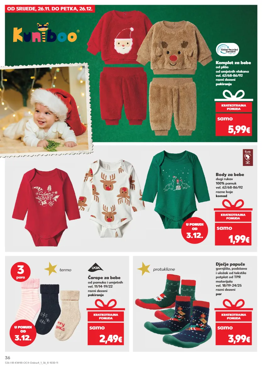 5,99 € samo kratkotrajna ponuda komplet za bebe od pliša od umjetnih vlakana vel. 62/68-86/92 razni dezeni pakiranje 2,49 € samo kratkotrajna ponuda čarape za bebe od pamuka i umjetnih vel. 11/14-19/22 razni dezeni pakiranje 1,99 € samo kratkotrajna ponuda body za bebe dugi rukav 100% pamuk vel. 62/68-86/92 razne boje komad 3,99 € samo kratkotrajna ponuda dječje papuče gornjište, podstava i uložak od tekstila potplat od tpr materijala vel. 18/19-24/25 razni dezeni par termo protuklizne 3 para u ponudi od 3.12. u ponudi od 3.12. od srijede, 26.11. do petka, 26.12. s36-hr-kw48-oc4-online4_1_36_r-1030-11 36