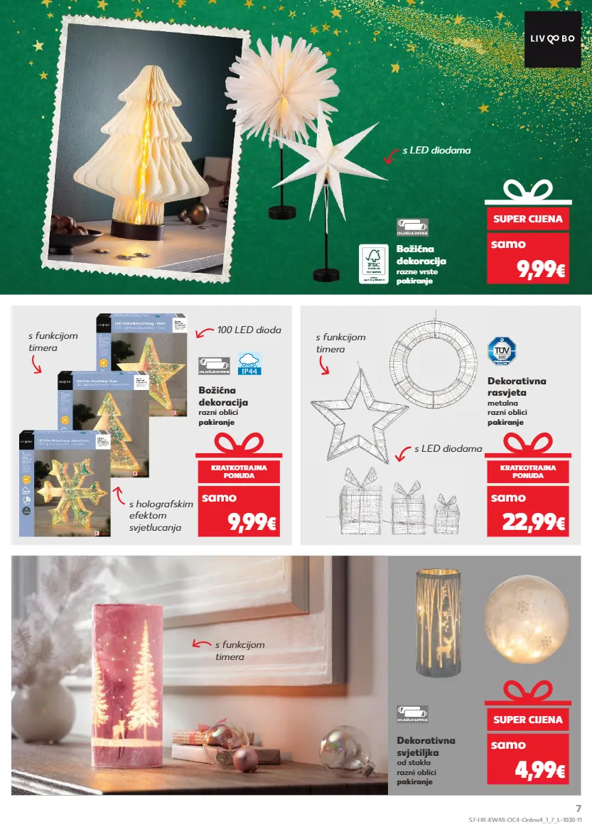 9,99 € samo KRATKOTRAJNA PONUDA 19,99 € samo KRATKOTRAJNA PONUDA Božićna dekoracija visina cca. 110 cm pakiranje Svjetleće drvo 120 ili 200 LED dioda visina cca. 120 ili 150 cm ukupna duljina kabela cca. 10 m razne boje pakiranje Božićna zvijezda dimenzije cca. 70x70x21 cm razne boje pakiranje 3,99 € samo SUPER CIJENA s funkcijom timera 20 LED dioda s LED diodama OD SRIJEDE, 26.11. DO PETKA, 26.12. S6-HR-KW48-OC4-Online4_1_6_R-1030-11 6