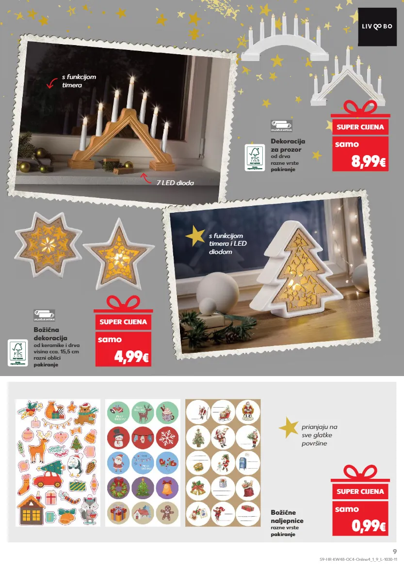 Dekoracija za prozor od drva razne vrste pakiranje Božićna dekoracija od keramike i drva visina cca. 15,5 cm razni oblici pakiranje 4,99 € samo SUPER CIJENA Božićne naljepnice razne vrste pakiranje 0,99 € samo SUPER CIJENA prianjaju na sve glatke površine s funkcijom timera i LED diodom 7 LED dioda s funkcijom timera 8,99 € samo SUPER CIJENA S9-HR-KW48-OC4-Online4_1_9_L-1030-11 9