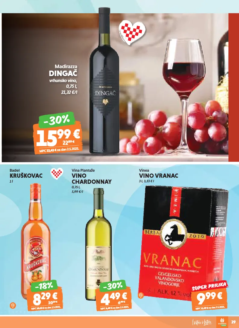 vinea vino vranac 3 l, 3,33 € l 29 -18% 8 29 € mpc 10,22 € na dan 2.5.2025. 10 19 € -30% 4 49 € mpc 6,49 € na dan 2.5.2025. 6 49 € badel kruškovac 1 l vina plantaže vino chardonnay 0,75 l, 5,99 €/l 9 99 € mpc 11,29 € na dan 2.5.2025. super prilika madirazza dingač vrhunsko vino, 0,75 l, 21,32 €/l -30% 15 99 € mpc 22,43 € na dan 2.5.2025. 22 89 €