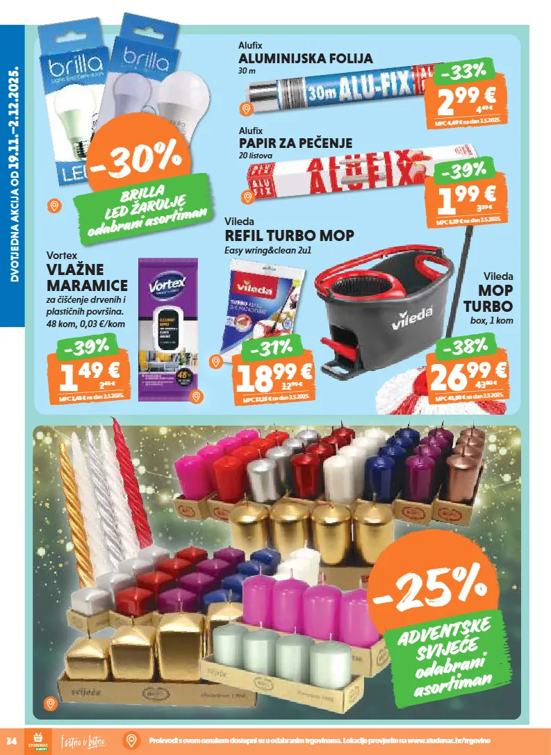 vileda mop turbo box, 1 kom vileda refil turbo mop easy wring&clean 2u1 alufix aluminijska folija 30 m alufix papir za pečenje 20 listova 34 proizvodi s ovom oznakom dostupni su u odabranim trgovinama. lokacije provjerite na www.studenac.hr/trgovine dvotjedna akcija od 19.11.–2.12.2025. -33% 2 99 € mpc 4,49 € na dan 2.5.2025. 4 49 € -38% 26 99 € mpc 43,80 € na dan 2.5.2025. 43 80 € -39% 1 99 € mpc 3,29 € na dan 2.5.2025. 3 29 € -25% adventske svijeće odabrani asortiman -30% brilla led žarulje odabrani asortiman -31% 18 99 € mpc 17,25 € na dan 2.5.2025. 12 99 € vortex vlažne maramice za čišćenje drvenih i plastičnih površina. 48 kom, 0,03 €/kom -39% 1 49 € mpc 2,45 € na dan 2.5.2025. 2 45 €