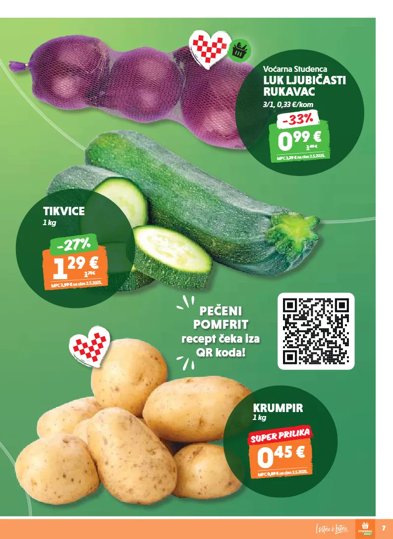7 tikvice 1 kg pečeni pomfrit recept čeka iza qr koda! krumpir 1 kg 0 45 € mpc 0,89 € na dan 2.5.2025. super prilika -27% 1 29 € mpc 1,99 € na dan 2.5.2025. 1 79€ voćarna studenca luk ljubičasti rukavac 3/1, 0,33 €/kom -33% 0 99 € mpc 1,29 € na dan 2.5.2025. 1 49 €