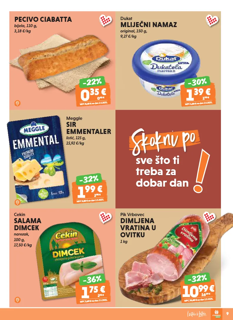 dukat mliječni namaz original, 150 g, 9,27 €/kg -30% 1 39 € mpc 1,86 € na dan 2.5.2025. 1 99 € -36% 1 75 € mpc 2,69 € na dan 2.5.2025. 2 75 € -32% 10 99 € mpc 15,60 € na dan 2.5.2025. 16 39 € -32% 1 99 € mpc 2,85 € na dan 2.5.2025. 2 95 € -22% 0 35 € mpc 0,45 € na dan 2.5.2025. 0 45 € meggle sir emmentaler listić, 125 g, 15,92 €/kg pecivo ciabatta bijela, 110 g, 3,18 €/kg pik vrbovec dimljena vratina u ovitku 1 kg cekin salama dimcek narezak, 100 g, 17,50 €/kg sve što ti treba za dobar dan skokni po 9