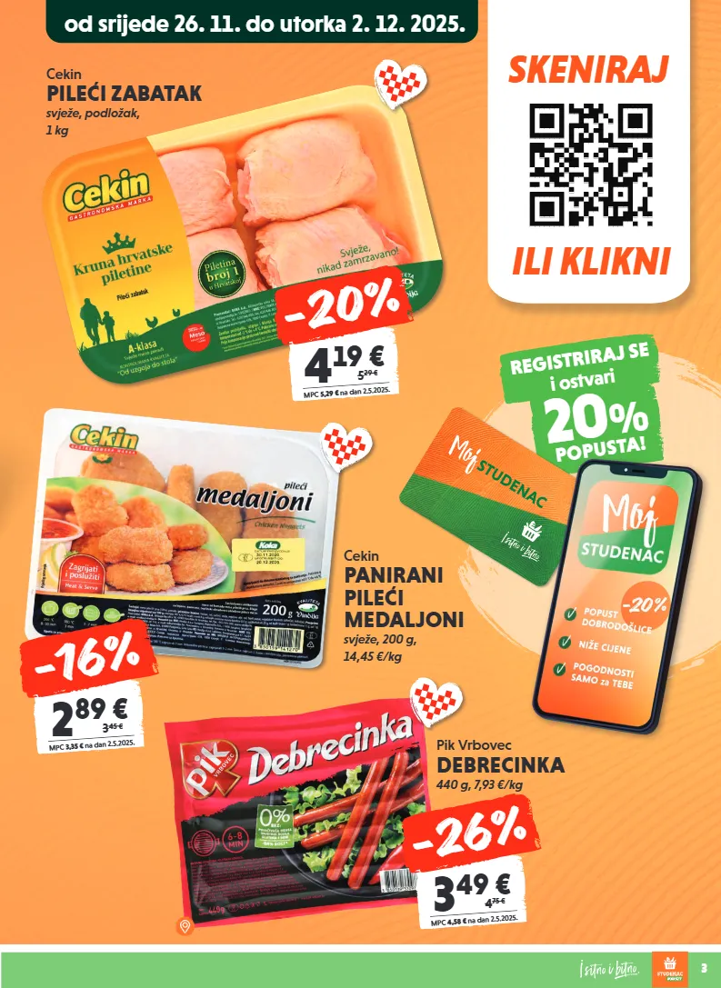 skeniraj ili klikni 3 registriraj se i ostvari 20 % popusta! 4 19 € mpc 5,29 € na dan 2.5.2025. 5 29 € -20% 2 89 € mpc 3,35 € na dan 2.5.2025. 3 45 € -16% pik vrbovec debrecinka 440 g, 7,93 €/kg cekin pileći zabatak svježe, podložak, 1 kg cekin panirani pileći medaljoni svježe, 200 g, 14,45 €/kg 3 49 € mpc 4,58 € na dan 2.5.2025. 4 75 € -26% od srijede 26. 11. do utorka 2. 12. 2025.