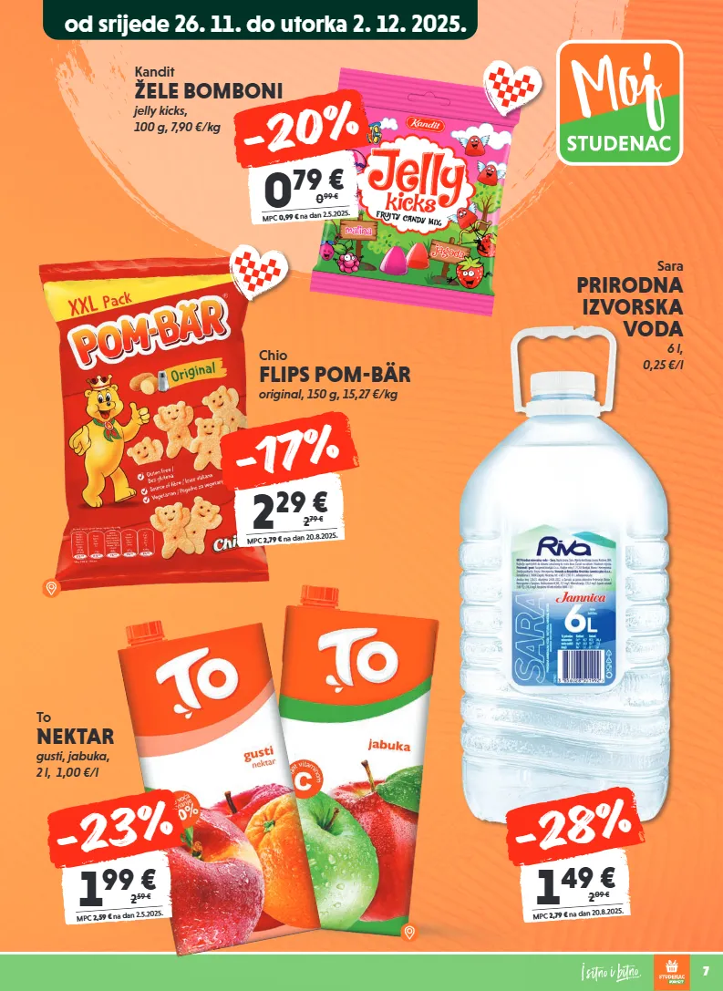 7 1 49 € mpc 2,79 € na dan 20.8.2025. 2 09 € -28% chio flips pom-bär original, 150 g, 15,27 €/kg sara prirodna izvorska voda 6 l, 0,25 €/l kandit žele bomboni jelly kicks, 100 g, 7,90 €/kg to nektar gusti, jabuka, 2 l, 1,00 €/l 0 79 € mpc 0,99 € na dan 2.5.2025. 0 99 € -20% 1 99 € mpc 2,59 € na dan 2.5.2025. 2 59 € -23% 2 29 € mpc 2,79 € na dan 20.8.2025. 2 79 € -17% od srijede 26. 11. do utorka 2. 12. 2025.