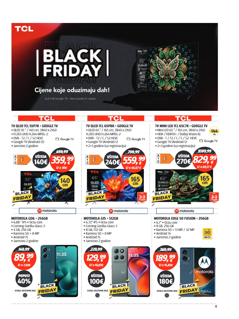 9 ušteda 100€ motorola g15 • 512gb • • 6.72" ips octa core • corning gorilla glass 3 8 gb, 512 gb • kamera 50 + 8 mp • android 15 • jamstvo 2 godine • ostale dostupne boje 229,99 129,⁹⁹ € 12 x 10,83€ popust 40% ostale dostupne boje 149,99 89,⁹⁹ € 12 x 7,50€ ušteda 180€ ostale dostupne boje 369,99 189,⁹⁹ € 12 x 15,83€ motorola edge 50 fusion • 256gb • • 6.7" octa core • 8 gb, 256 gb kamera 50 + 13 mp / 32 mp • android 14 • jamstvo 2 godine • motorola g06 • 256gb • • 6.88 " ips octa core • corning gorilla glass 3 4 gb, 256 gb • kamera 50 + 8 mp • android 15 • jamstvo 2 godine • tv qled tcl 55p7k • google tv • qled 55 " / 140 cm, 3840 x 2160 h.265 uhd h.264 mpeg-2 • dvb - t2 / c / s2 hevc • google tv (android 12) • jamstvo 2 godine • ušteda 140€ 499,99 359,⁹⁹ € 12 x 30€ ušteda 240€ 799,99 559,⁹⁹ € 12 x 46,67 € ušteda 270€ 1099,99 829,⁹⁹ € 12 x 69,17 € tv qled tcl 65p8k • google tv • qled 65 " / 165 cm, 3840 x 2160 h.265 uhd h.264 mpeg-2 dvb - t2 / c / s2 hevc • google tv (android 12 • 2+3 godine (uz registraciju) • tv mini led tcl 65c7k • google tv • mini led 65 " / 165 cm, 3840 x 2160 hdr / hdr10+ / dolby vision iq • dvb - t / t2 / c / s / s2 hevc • google tv (android 12 • 2+3 godine (uz registraciju) • 140 cm 165 cm 165 cm 144 hz