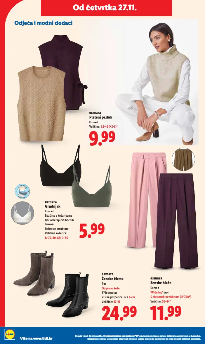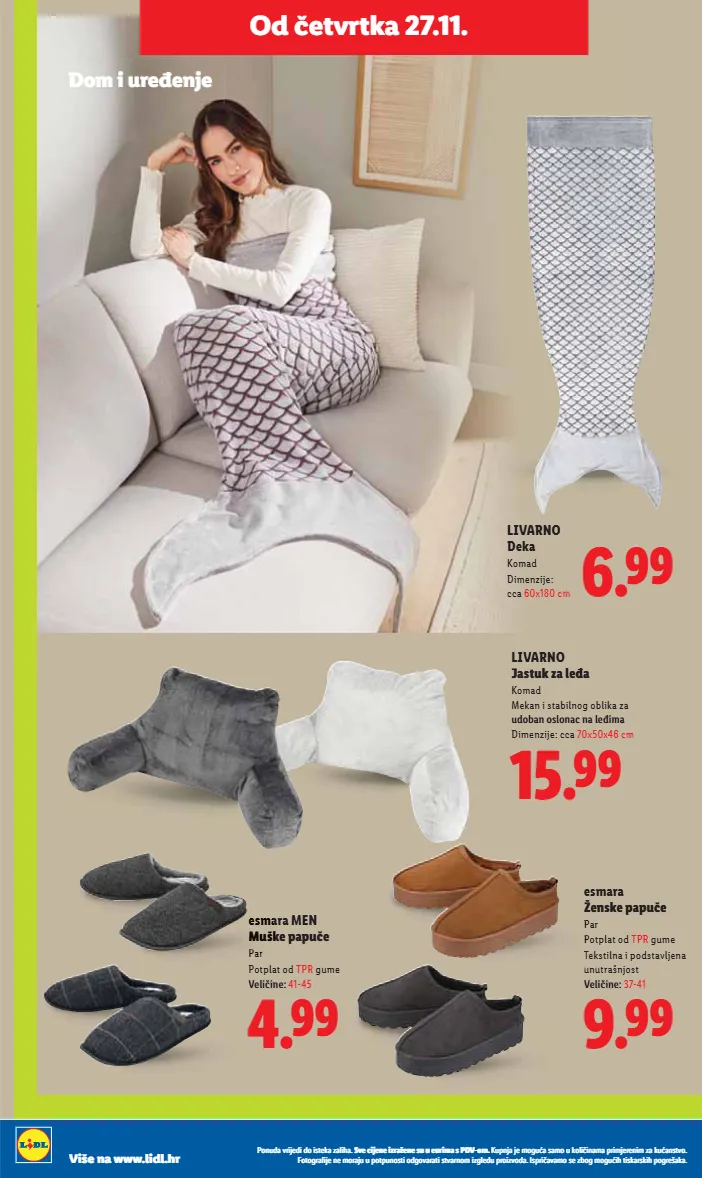 livarno home jastučnica s dva lica komad od čistog pamuka prikladna za jastuk za bočno spavanje s patentnim zatvaračem dimenzije: 40x145 cm -62% 1.49 3.99 esmara® ženska majica komad visoki udio pamuka i elastansko vlakno (lycra®) 3/4 rukavi veličine: 36-46 (s-l)* -50% 1.99 3.99 lupilu® dječja kabanica komad s reflektirajućim elementima nepromočiva i nepropusna za vjetar troslojna kapuljača veličine: 86-128* -61% 3.49 8.99 do -62% na odabrane proizvode od četvrtka 27.11. crelando škare set oštrice od nehrđajućeg čelika uključujući krojačke škare, škare za domaćinstvo i škare za modeliranje -50% 0.99 1.99 3x livarno home navlaka za perilicu rublja komad dimenzije: cca 60x60x4 cm -50% 1.99 3.99 1 kom = 0.33 € ponuda vrijedi do isteka zaliha. sve cijene izražene su u eurima s pdv-om. kupnja je moguća samo u količinama primjerenim za kućanstvo. fotografije ne moraju u potpunosti odgovarati stvarnom izgledu proizvoda. ispričavamo se zbog mogućih tiskarskih pogrešaka. više na www.lidl.hr