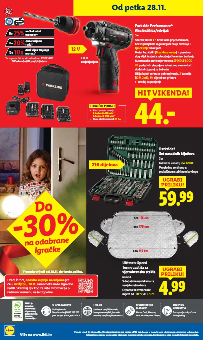 od četvrtka 27.11. do 30.11. izdanje 48/2025 ponuda vrijedi do isteka zaliha. sve cijene izražene su u eurima s pdv-om. kupnja je moguća samo u količinama primjerenim za kućanstvo. fotografije ne moraju u potpunosti odgovarati stvarnom izgledu proizvoda. ispričavamo se zbog mogućih tiskarskih pogrešaka. više na www.lidl.hr 1 kom = 15.- € je svaki dan. isplati se. snižendan parkside® aku baterija 2 komada u setu učinkovita litij-ionska baterija s 3 -stupanjskim prikazom stanja napunjenosti cell balancing - duže vrijeme rada baterije, produžen vijek trajanja baterije 29.99 hit tjedna! 20 v / 4 ah 2. 39 -40% 3.99 mpc na 2.5.2025.: 3.99 culinea panirani sir trapist 500 g 1 kg = 4.78 1. 34 -50% 2.69 mpc na 2.5.2025.: 2.59 maribel džem od jagode 450 g 1 kg = 2.98 2.69 1.69 -37% uz lidl plus mpc na 2.5.2025.: 2.69 pilos gouda 250 g 1 kg = 6.76 polutvrdi sir u komadu 1.69 1.15 -31% uz lidl plus mpc na 2.5.2025.: 1.89 pilos tekući jogurt 1 kg 2,8% m.m. povratna naknada uključena je u cijenu domaća rajčica grappolo 1.29 kg mpc na 2.5.2025.: 2.49 2 baterije po cijeni 1