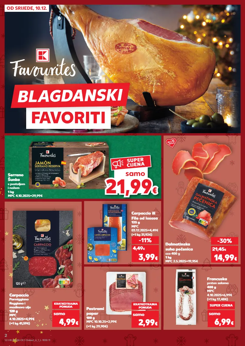 kratkotrajna ponuda samo kratkotrajna ponuda samo kratkotrajna ponuda samo samo samo favoriti favoriti blagdanski blagdanski od srijede, 10.12. dalmatinska suha pečenica cca 400 g 1 kg mpc 2.5.2025=19,95€ francuska prsten salama 400 g mpc 4.10.2025=6,99€ (=1 kg 17,48€) carpaccio parmiggiano reggiano i maslinovo ulje 120 g mpc 4.10.2025=4,99€ (=1 kg 41,59€) carpaccio ili file od lososa 125 g mpc 03.12.2025=4,49€ (=1 kg 31,92€) -11% 3,99 € 4,49 € -30% 14,99 € 21,45 € super cijena 6,99 € samo serrano šunka s postoljem i nožem 1 kg mpc 4.10.2025=29,99€ kratkotrajna ponuda 4,99 € samo kratkotrajna ponuda 2,99 € samo (=1 kg 29,90€) pastrami papar 100 g mpc 10.10.25=2,99€ 21,99 21,99 € € samo super cijena s2-hr-kw50-oc1-online1_6_1_l-1030-11 2