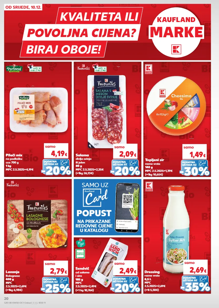 marke biraj oboje! kvaliteta ili povoljna cijena? samo uz popust na prikazane redovne cijene u katalogu od srijede, 10.12. samo 2,69 € samo 2,49 € samo 1,49 € samo 2,09 € samo 4,19 € samo 2,79 € (=1kg 26,13€) salama divlja svinja ili jelen 80 g mpc 2.5.2025=2,35€ (=1l 5,38€) dressing razne vrste 0,5 l mpc 2.5.2025=2,69€ (=1 kg 10,76€) sendvič od salame i sira 185 g mpc 2.5.2025=2,49€ (=1kg 10,65€) topljeni sir razne vrste 140 g mpc 2.5.2025=1,39€ pileći mix na podlošku cca 700 g 1 kg mpc 2.5.2025=4,19€ - - 20 % 20 % dodatna ušteda uz - - 20 % 20 % dodatna ušteda uz - - 35 % 35 % dodatna ušteda uz - - 20 % 20 % dodatna ušteda uz (=1kg 6,98€) lazanje bolognese 400 g mpc 2.5.2025=2,69€ - - 25 % 25 % dodatna ušteda uz - - 30% 30% dodatna ušteda uz s20-hr-kw50-oc1-online1_1_1_l-1030-11 20