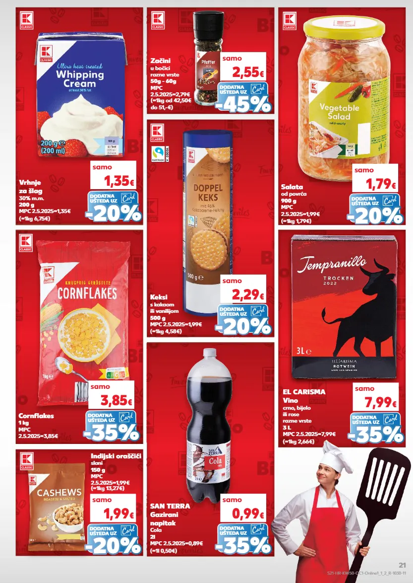 samo samo samo samo 2,55 € 3,85 € 1,99 € 7,99 € samo samo 2,29 € 0,99 € samo 1,79 € (=1kg 4,58€) (=1l 0,50€) keksi s kakaom ili vanilijom 500 g mpc 2.5.2025=1,99€ san terra gazirani napitak cola 2l mpc 2.5.2025=0,89€ (=1kg od 42,50€ do 51,-€) (=1kg 13,27€) (=1kg 2,66€) začini u bočici razne vrste 50g - 60g mpc 2.5.2025=2,79€ cornflakes 1 kg mpc 2.5.2025=3,85€ indijski oraščići slani 150 g mpc 2.5.2025=1,99€ el carisma vino crno, bijelo ili rose razne vrste 3 l mpc 2.5.2025=7,99€ (=1kg 1,79€) salata od povrća 900 g mpc 2.5.2025=1,99€ - - 45 % 45 % - - 35 % 35 % - - 20 % 20 % - - 35 % 35 % dodatna ušteda uz dodatna ušteda uz dodatna ušteda uz dodatna ušteda uz - - 20 % 20 % - - 35 % 35 % dodatna ušteda uz dodatna ušteda uz samo 1,35 € (=1kg 6,75€) vrhnje za šlag 30% m.m. 200 g mpc 2.5.2025=1,35€ - - 20 % 20 % dodatna ušteda uz - - 20 % 20 % dodatna ušteda uz s21-hr-kw50-oc1-online1_1_2_r-1030-11 21