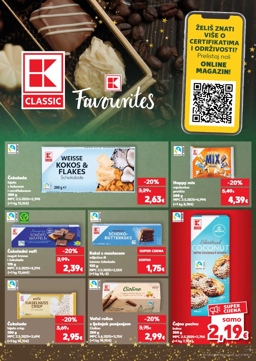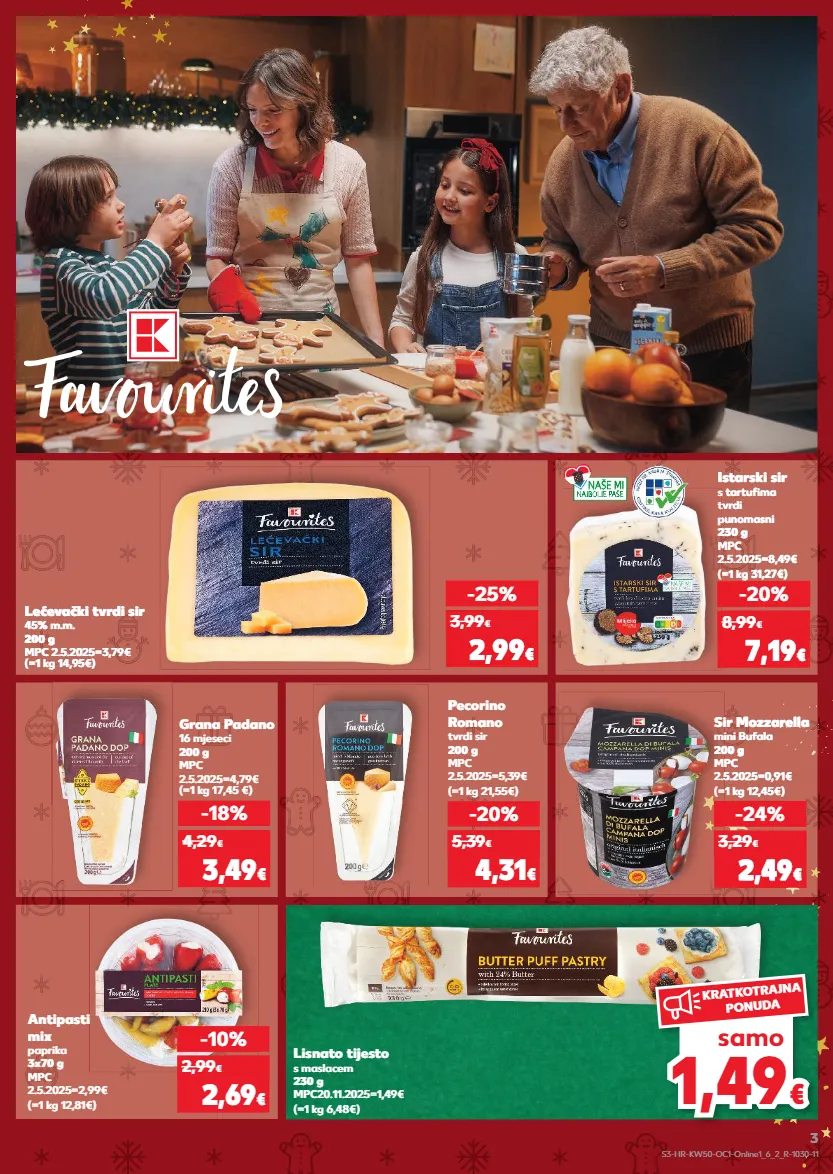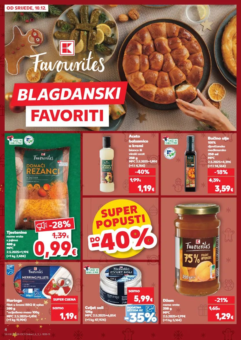iste cijene na kopnu i na moru! kratkotrajna ponuda samo kratkotrajna ponuda samo kratkotrajna ponuda samo više na str. 2-5 više na str. 2-5 blagdanska ponuda više na str. 6-9 k favourites radimo sve nedjelje u prosincu! od srijede, 10.12. do utorka, 16.12.2025. kaufland marke više na str. 10-13 više na str. 10-13 smrznuto više na str. 16-18 želiš još bogatiju ponudu? dobiješ je u online katalogu! super cijena 1,49 € samo (=1 kg 3,73€) ledo mahune žute ili zelene 400 g mpc 2.5.2025=1,59€ -10% 2,95 € 3,29 € (=1 kg 11,80€) praline brandy beans 250 g mpc 2.5.2025=3,29€ (=1 kg od 21,96€ do 24,40€) repovi kozica provansa ili classic 225 g ili 250 g mpc 2.5.2025=5,49€ samo 5,49 € - - 30% 30% dodatna ušteda uz livanjski tvrdi sir 45% m.m. 200 g mpc 2.5.2025=3,89€ (=1 kg 15,55€) -20% 3,11 € 3,89 € 1,60 € s1-hr-kw50-oc1-ts_ok_1-1030-11