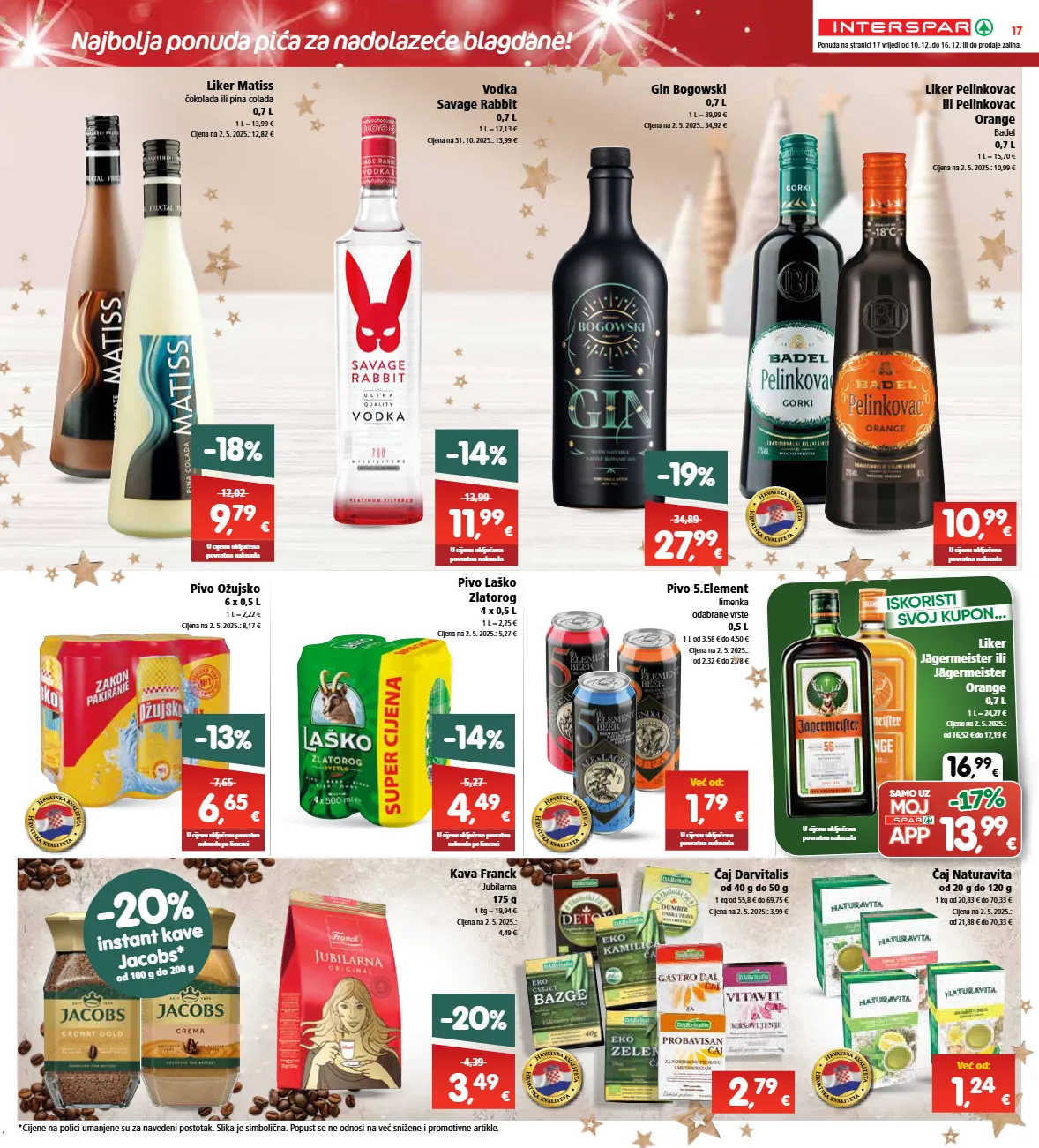iskoristi svoj kupon... 16 , 99 € samo uz 13 , 99 € -17% -17% u cijenu uključena povratna naknada u cijenu uključena povratna naknada u cijenu uključena povratna naknada u cijenu uključena povratna naknada u cijenu uključena povratna naknada u cijenu uključena povratna naknada po limenci u cijenu uključena povratna naknada po limenci -20 % instant kave jacobs* od 100 g do 200 g liker jägermeister ili jägermeister orange 0,7 l 1 l = 24,27 € cijena na 2. 5. 2025.: od 16,52 € do 17,19 € liker matiss čokolada ili pina colada 0,7 l 1 l = 13,99 € cijena na 2. 5. 2025.: 12,82 € 9 , 79 € 12,02 -18 % 27 , 99 € 34,89 -19 % 11 , 99 € 13,99 -14 % 4 , 49 € 5,27 -14 % 6 , 65 € 7,65 -13 % 3 , 49 € 4,39 -20 % 10 , 99 € 2 , 79 € h r v a t s k a k v a l i t e t a h r v a t s k a k v a l i t e t a h r v a t s k a k v a l i t e t a h r v a t s k a k v a l i t e t a h r v a t s k a k v a l i t e t a h r v a t s k a k v a l i t e t a h r v a t s k a k v a l i t e t a h r v a t s k a k v a l i t e t a h r v a t s k a k v a l i t e t a h r v a t s k a k v a l i t e t a liker pelinkovac ili pelinkovac orange badel 0,7 l 1 l = 15,70 € cijena na 2. 5. 2025.: 10,99 € gin bogowski 0,7 l 1 l = 39,99 € cijena na 2. 5. 2025.: 34,92 € vodka savage rabbit 0,7 l 1 l = 17,13 € cijena na 31. 10. 2025.: 13,99 € pivo laško zlatorog 4 x 0,5 l 1 l = 2,25 € cijena na 2. 5. 2025.: 5,27 € kava franck jubilarna 175 g 1 kg = 19,94 € cijena na 2. 5. 2025.: 4,49 € pivo 5.element limenka odabrane vrste 0,5 l 1 l od 3,58 € do 4,50 € cijena na 2. 5. 2025.: od 2,32 € do 2,78 € pivo ožujsko 6 x 0,5 l 1 l = 2,22 € cijena na 2. 5. 2025.: 8,17 € čaj naturavita od 20 g do 120 g 1 kg od 20,83 € do 70,33 € cijena na 2. 5. 2025.: od 21,88 € do 70,33 € čaj darvitalis od 40 g do 50 g 1 kg od 55,8 € do 69,75 € cijena na 2. 5. 2025.: 3,99 € 1 , 79 € već od: 1 , 24 € već od: ponuda na stranici 17 vrijedi od 10. 12. do 16. 12. ili do prodaje zaliha. 17 *cijene na polici umanjene su za navedeni postotak. slika je simbolična. popust se ne odnosi na već snižene i promotivne artikle. najbolja ponuda pića za nadolazeće blagdane!