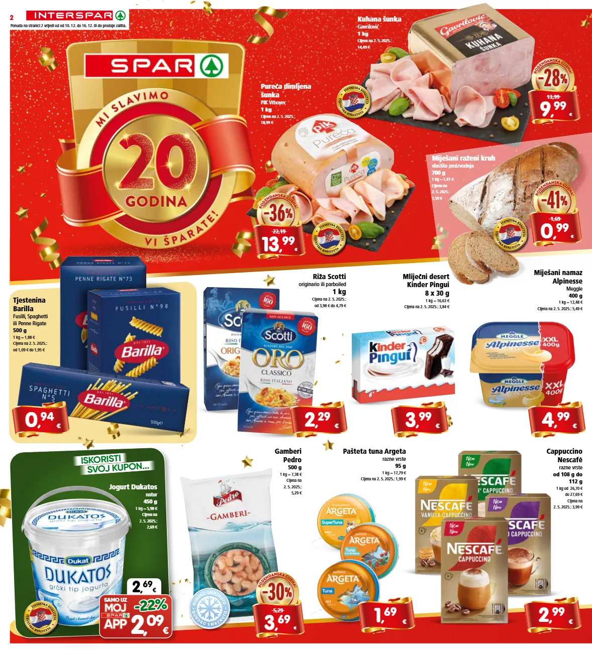 r o đ e n d a n s k a c i j e n a ! -28 % 9 , 99 € 13,99 r o đ e n d a n s k a c i j e n a ! -41 % 0 , 99 € 1,69 r o đ e n d a n s k a c i j e n a ! -30 % 3 , 69 € 5,29 kuhana šunka gavrilović 1 kg cijena na 2. 5. 2025.: 14,49 € r o đ e n d a n s k a c i j e n a ! -36 % 13 , 99 € 22,19 pureća dimljena šunka pik vrbovec 1 kg cijena na 2. 5. 2025.: 18,99 € miješani raženi kruh vlastita proizvodnja 700 g 1 kg = 1,41 € cijena na 2. 5. 2025.: 1,59 € 4 , 99 € 2 , 29 € 3 , 99 € 1 , 69 € 2 , 99 € tjestenina barilla fusilli, spaghetti ili penne rigate 500 g 1 kg = 1,88 € cijena na 2. 5. 2025.: od 1,09 € do 1,95 € h r v a t s k a k v a l i t e t a h r v a t s k a k v a l i t e t a h r v a t s k a k v a l i t e t a h r v a t s k a k v a l i t e t a h r v a t s k a k v a l i t e t a h r v a t s k a k v a l i t e t a miješani namaz alpinesse meggle 400 g 1 kg = 12,48 € cijena na 2. 5. 2025.: 5,49 € riža scotti originario ili parboiled 1 kg cijena na 2. 5. 2025.: od 3,98 € do 4,79 € mliječni desert kinder pingui 8 x 30 g 1 kg = 16,63 € cijena na 2. 5. 2025.: 3,84 € pašteta tuna argeta razne vrste 95 g 1 kg = 17,79 € cijena na 2. 5. 2025.: 1,99 € cappuccino nescafé razne vrste od 108 g do 112 g 1 kg od 26,70 € do 27,69 € cijena na 2. 5. 2025.: 3,99 € gamberi pedro 500 g 1 kg = 7,38 € cijena na 2. 5. 2025.: 5,29 € jogurt dukatos natur 450 g 1 kg = 5,98 € cijena na 2. 5. 2025.: 2,69 € 2 , 69 € samo uz 2 , 09 € -22% -22% iskoristi svoj kupon... h r v a t s k a k v a l i t e t a h r v a t s k a k v a l i t e t a ponuda na stranici 2 vrijedi od od 10. 12. do 16. 12. ili do prodaje zaliha. 2 0 , 94 €