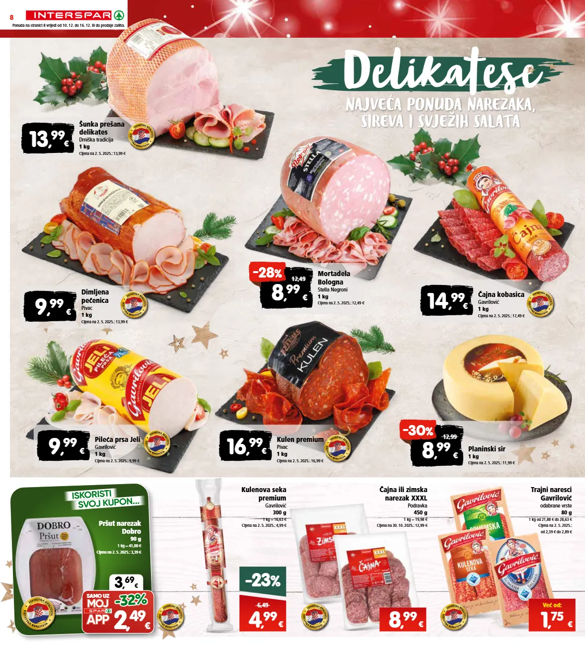 svinjska lopatica bez kosti na pultu 1 kg cijena na 2. 5. 2025.: 5,19 € svinjska klasična polovica s glavom, nogicama i salom na pultu 1 kg cijena na 2. 5. 2025.: 3,99 € 2 , 49 € 3 , 29 € svježa domaća kobasica za sušenje ili pećenje ravlić 1 kg cijena na 2.12. 2025.: 6,99 € juneći vrat bez kosti na pultu 1 kg cijena na 2. 5. 2025.: 10,49 € 12 , 49 € 3 , 18 € međimursko pile perutnina 1 kg cijena na 2. 5. 2025.: 3,31 € pileća krila sous vide p.g. orehovec 600 g 1 kg = 5,82 € cijena na 6. 11. 2025.: 6,99 € pileći file perutnina 500 g 1 kg = 9,58 € cijena na 2. 5. 2025.: 4,79 € 4 , 79 € 5 , 15 € pileći mini file, medaljoni ili odresci od filea cekin 400 g 1 kg =12,88 € cijena na 2. 5. 2025.: 6,29 € mlada janjetina na pultu 1 kg cijena na 2. 5. 2025.: 13,99 € 11 , 99 € teleća rebra / prsa / flam na pultu 1 kg cijena na 2. 5. 2025.: 9,59 € 7 , 89 € h r v a t s k a k v a l i t e t a h r v a t s k a k v a l i t e t a h r v a t s k a k v a l i t e t a h r v a t s k a k v a l i t e t a h r v a t s k a k v a l i t e t a h r v a t s k a k v a l i t e t a h r v a t s k a k v a l i t e t a h r v a t s k a k v a l i t e t a h r v a t s k a k v a l i t e t a h r v a t s k a k v a l i t e t a 3 , 49 € 6,99 -50 % 4 , 99 € 6,99 -28 % novo! 100% hrvatsko na vaš zahtjev vršimo obradu svinjske polovice na dijelove! 3 , 19 € svinjska potrbušina za sušenje na pultu 1 kg cijena na 2. 5. 2025.: 4,49 € težine do 12 kg novo! iz radosti prema blagdanima! ponuda na stranici 4 vrijedi od od 10. 12. do 16. 12. ili do prodaje zaliha. 4 ponuda na stranici 4 vrijedi od 10. 12. do 16. 12. ili do prodaje zaliha. 4 iz radosti prema blagdanima!