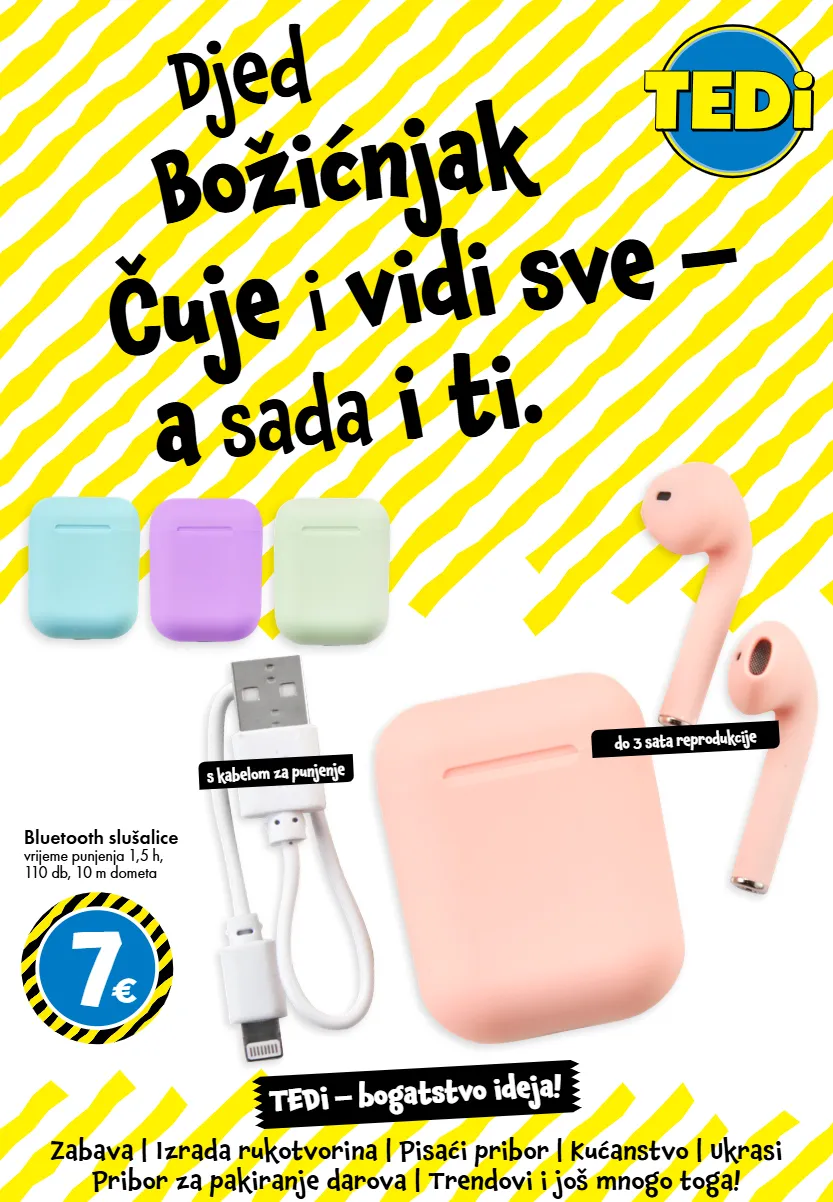 bluetooth slušalice vrijeme punjenja 1,5 h, 110 db, 10 m dometa 7 € božićnjak čuje i vidi sve – a sada i ti. djed zabava | izrada rukotvorina | pisaći pribor | kućanstvo | ukrasi pribor za pakiranje darova | trendovi i još mnogo toga! tedi – bogatstvo ideja! s kabelom za punjenje do 3 sata reprodukcije