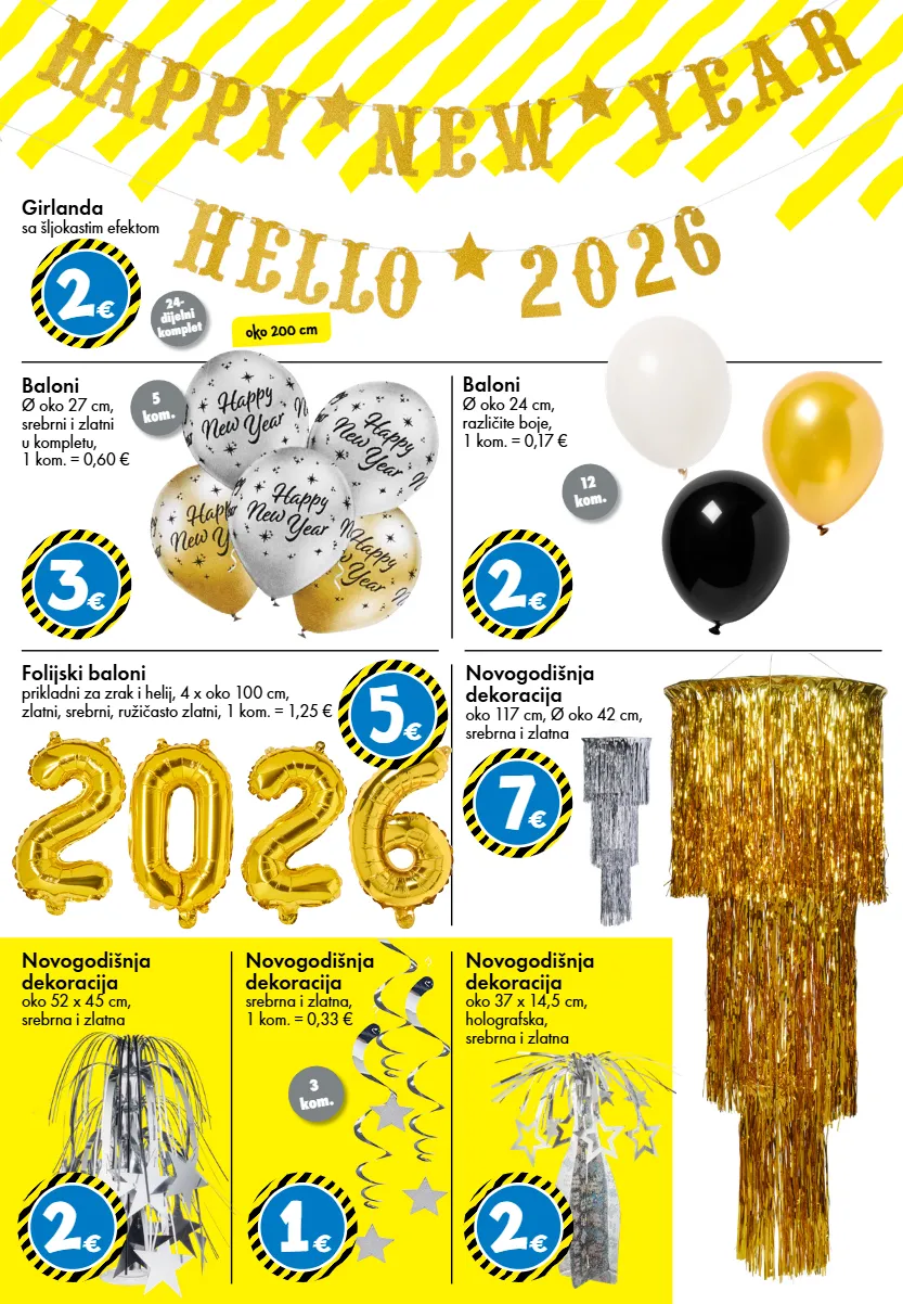 Folijski baloni prikladni za zrak i helij, 4 x oko 100 cm, zlatni, srebrni, ružičasto zlatni, 1 kom. = 1,25 € Baloni Ø oko 24 cm, različite boje, 1 kom. = 0,17 € Novogodišnja dekoracija oko 37 x 14,5 cm, holografska, srebrna i zlatna Girlanda sa šljokastim efektom Novogodišnja dekoracija oko 117 cm, Ø oko 42 cm, srebrna i zlatna Novogodišnja dekoracija srebrna i zlatna, 1 kom. = 0,33 € 3 kom. Baloni Ø oko 27 cm, srebrni i zlatni u kompletu, 1 kom. = 0,60 € 2 € 2 € 2 € 1 € Novogodišnja dekoracija oko 52 x 45 cm, srebrna i zlatna oko 200 cm 7 € 5 € 2 € 3 € 24- dijelni komplet 5 kom. 12 kom.