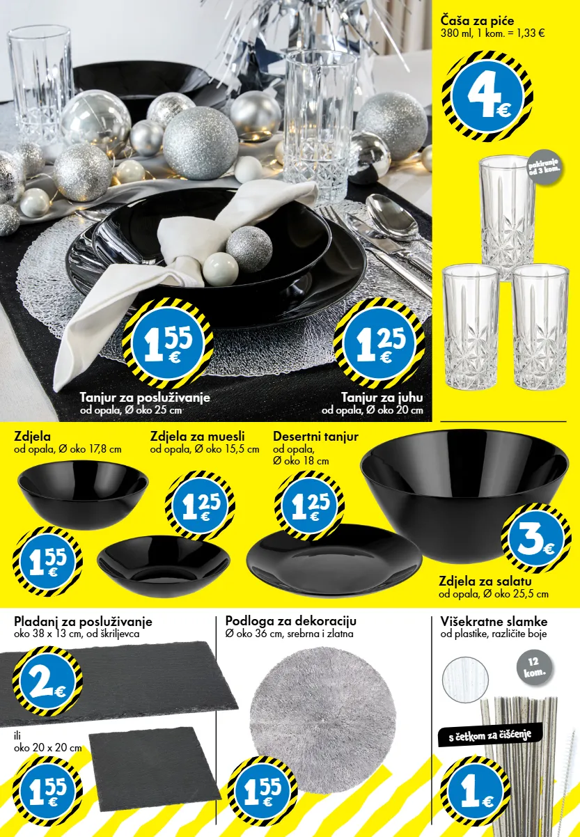 pladanj za posluživanje oko 38 x 13 cm, od škriljevca desertni tanjur od opala, ø oko 18 cm zdjela za muesli od opala, ø oko 15,5 cm tanjur za posluživanje od opala, ø oko 25 cm zdjela od opala, ø oko 17,8 cm tanjur za juhu od opala, ø oko 20 cm zdjela za salatu od opala, ø oko 25,5 cm € 1 2 5 1 55 € višekratne slamke od plastike, različite boje 12 kom. čaša za piće 380 ml, 1 kom. = 1,33 € 1 55 € € 1 2 5 € 1 2 5 4 € 1 € 2 € ili oko 20 x 20 cm 3 € 1 55 € 1 55 € podloga za dekoraciju ø oko 36 cm, srebrna i zlatna pakiranje od 3 kom. s četkom za čišćenje