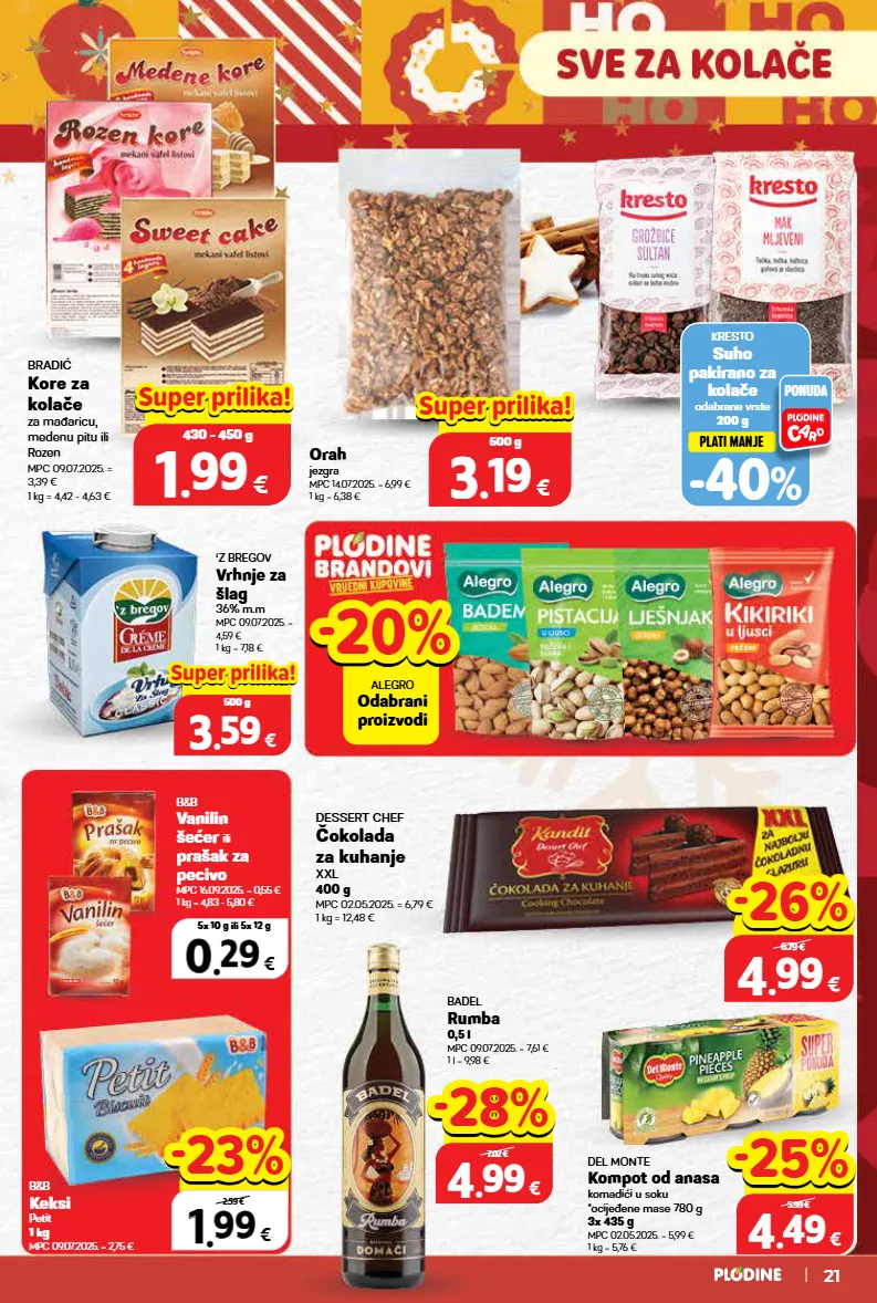 lago piškote savoiardi mpc 02.05.2025. = 1,75 € 1 kg = 4,13 € dan cake biskvitna podloga za tortu čokolada ili vanilija mpc 02.05.2025. = 2,99 € 1 kg = 5,73 € kraš čokolada ili kakao u prahu mpc 09.07.2025. = 3,19 € marjan voće indijski orah pečeni slani mpc 28.11.2025. = 6,09 € 1 kg = 13,96 € marjan voće brusnica suha mpc 22.07.2025. = 5,09 € 1 kg = 7,48 € marjan voće badem jezgra mpc 16.06.2025. = 6,69 € 1 kg = 7,58 € marjan voće energy ili student mix mpc 28.07.2025. = 6,19 € 1 kg = 6,98 € samo u plodinama 0% 0% 0.00 € top cijena! već od hit cijena! 1 1 . . 65 65 € 400 g super prilika! super prilika! samo u plodinama 0% 0% 0.00 € top cijena! već od hit cijena! 2 2 . . 29 29 € 400 g super prilika! super prilika! top cijena! već od hit cijena! 1 1 . . 79 79 € 100 g već od već od 22 podravka pekmez od šljiva 660 g mpc 09.07.2025. = 4,89 € 1 kg = 5,44 € dolcela mješavina za kolače odabrane vrste mpc 09.07.2025. = 3,99 € top cijena! 1 1 . . 99 99 € 230 - 407 g već od već od -30% -30% lotus keksi ili namaz odabrani proizvodi 250 - 400 g dr.oetker puding vanilija ili čokolada 3+1 mpc 09.07.2025. = 2,55 € 1 kg = 6,58 - 11,73 € samo u plodinama 0% 0% 0.00 € top cijena! već od hit cijena! 1 1 . . 29 29 € 152 - 196 g super prilika! super prilika! samo u plodinama 0% 0% 0.00 € top cijena! već od hit cijena! 3 3 . . 49 49 € 500 g super prilika! super prilika! samo u plodinama 0% 0% 0.00 € top cijena! već od hit cijena! 3 3 . . 79 79 € 500 g super prilika! super prilika! samo u plodinama 0% 0% 0.00 € top cijena! već od hit cijena! 3 3 . . 49 49 € 250 g super prilika! super prilika! samo u plodinama 0% 0% 0.00 € top cijena! već od hit cijena! 2 2 . . 99 99 € 400 g super prilika! super prilika! top cijena! već od hit cijena! super prilika! 3 3 . . 59 59 € 660 g samo u plodinama 4.69 € -23% -23%