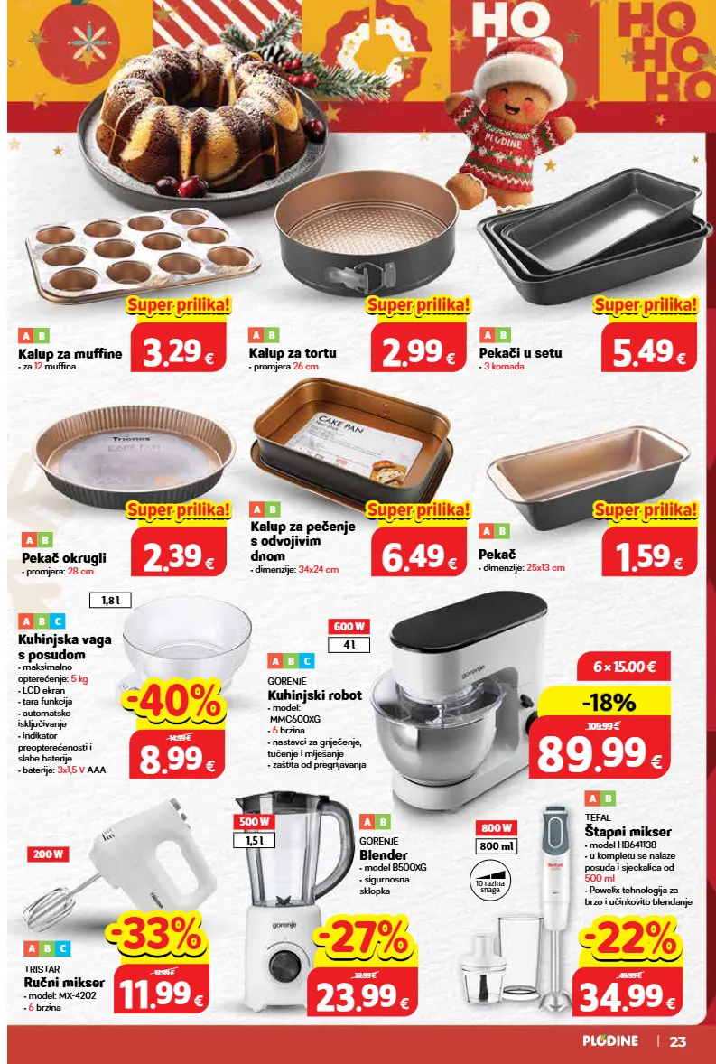 pekač okrugli • promjera: 28 cm kalup za muffine • za 12 muffina kuhinjska vaga s posudom • maksimalno opterećenje: 5 kg • lcd ekran • tara funkcija • automatsko isključivanje • indikator preopterećenosti i slabe baterije • baterije: 3x1,5 v aaa kalup za pečenje s odvojivim dnom • dimenzije: 34x24 cm kalup za tortu • promjera 26 cm pekač • dimenzije: 25x13 cm pekači u setu • 3 komada a b c tristar ručni mikser • model: mx-4202 • 6 brzina a b c a b a b gorenje blender • model b500xg • sigurnosna sklopka a b tefal štapni mikser • model hb641138 • u kompletu se nalaze posuda i sjeckalica od 500 ml • powelix tehnologija za brzo i učinkovito blendanje a b a b a b a b a b 800 w 800 ml 200 w 500 w 1,5 l 1,8 l top cijena! već od hit cijena! super prilika! 8 8 . . 99 99 € samo u plodinama 14.99 € -40% -40% top cijena! već od hit cijena! super prilika! 11 11 . . 99 99 € samo u plodinama 17.99 € -33% -33% samo u plodinama 0% 0% 0.00 € top cijena! već od hit cijena! 2 2 . . 39 39 € super prilika! super prilika! samo u plodinama 0% 0% 0.00 € top cijena! već od hit cijena! 3 3 . . 29 29 € super prilika! super prilika! samo u plodinama 0% 0% 0.00 € top cijena! već od hit cijena! 6 6 . . 49 49 € super prilika! super prilika! samo u plodinama 0% 0% 0.00 € top cijena! već od hit cijena! 2 2 . . 99 99 € super prilika! super prilika! samo u plodinama 0% 0% 0.00 € top cijena! već od hit cijena! 1 1 . . 59 59 € super prilika! super prilika! samo u plodinama 0% 0% 0.00 € top cijena! već od hit cijena! 5 5 . . 49 49 € super prilika! super prilika! gorenje kuhinjski robot • model: mmc600xg • 6 brzina • nastavci za gnječenje, tučenje i miješanje • zaštita od pregrijavanja a b c 600 w 4 l top cijena! već od hit cijena! super prilika! 89 89 . . 99 99 € samo u plodinama -18% -18% 109.99 € 6 × 15.00 € top cijena! već od hit cijena! super prilika! 23 23 . . 99 99 € samo u plodinama 32.99 € -27% -27% top cijena! već od hit cijena! super prilika! 34 34 . . 99 99 € samo u plodinama 49.99 € -22% -22% 10 razina snage 23