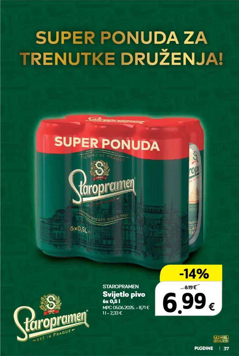 staropramen svijetlo pivo 6x 0,5 l mpc 05.06.2025. = 8,71 € 1 l = 2,33 € top cijena! već od hit cijena! super prilika! 6 6 . . 99 99 € xxxxx samo u plodinama -14% -14% 8.19 € 37