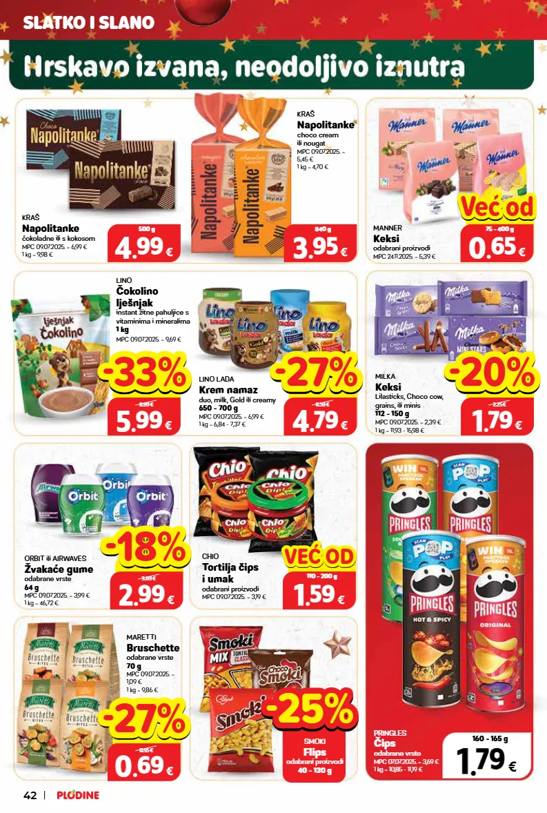 kraš napolitanke čokoladne ili s kokosom mpc 09.07.2025. = 6,99 € 1 kg = 9,98 € 4 4 . . 99 99 € 500 g manner keksi odabrani proizvodi mpc 24.11.2025. = 5,39 € top cijena! 0 0 . . 65 65 € 75 - 400 g orbit ili airwaves žvakaće gume odabrane vrste 64 g mpc 09.07.2025. = 3,99 € 1 kg = 46,72 € top cijena! već od hit cijena! super prilika! 2 2 . . 99 99 € 64 g samo u plodinama 3.69 € maretti bruschette odabrane vrste 70 g mpc 09.07.2025. = 1,09 € 1 kg = 9,86 € top cijena! već od hit cijena! super prilika! 0 0 . . 69 69 € 70 g samo u plodinama 0.95 € milka keksi lilasticks, choco cow, grains, ili minis 112 - 150 g mpc 09.07.2025. = 2,39 € 1 kg = 11,93 - 15,98 € chio tortilja čips i umak odabrani proizvodi mpc 09.07.2025. = 3,19 € top cijena! već od hit cijena! super prilika! 1 1 . . 79 79 € 112 - 150 g samo u plodinama 2.25 € lino lada krem namaz duo, milk, gold ili creamy 650 - 700 g mpc 09.07.2025. = 6,99 € 1 kg = 6,84 - 7,37 € top cijena! već od hit cijena! super prilika! 4 4 . . 79 79 € 650 - 700 g samo u plodinama 6.59 € kraš napolitanke choco cream ili nougat mpc 09.07.2025. = 5,45 € 1 kg = 4,70 € 3 3 . . 95 95 € 840 g pringles čips odabrane vrste mpc 07.07.2025. = 3,69 € 1 kg = 10,85 - 11,19 € lino čokolino lješnjak instant žitne pahuljice s vitaminima i mineralima 1 kg mpc 09.07.2025. = 9,69 € top cijena! već od hit cijena! super prilika! 5 5 . . 99 99 € 1 kg samo u plodinama 8.99 € 1 1 . . 79 79 € 160 - 165 g -20% -20% -27% -27% -33% -33% -27% -27% -18% -18% već od već od top cijena! 1 1 . . 59 59 € 110 - 200 g već od već od -25% -25% smoki flips odabrani proizvodi 40 - 130 g slatko i slano 42