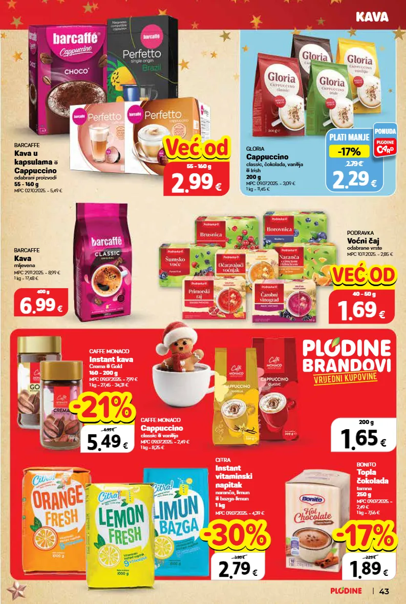 bonito topla čokolada tamna 250 g mpc 09.07.2025. = 2,49 € 1 kg = 7,56 € caffe monaco instant kava crema ili gold 160 - 200 g mpc 09.07.2025. = 7,99 € 1 kg = 27,45 - 34,31 € barcaffe kava u kapsulama ili cappuccino odabrani proizvodi 55 - 160 g mpc 02.10.2025. = 5,49 € citra instant vitaminski napitak naranča, limun ili bazga-limun 1 kg mpc 09.07.2025. = 4,39 € podravka voćni čaj odabrane vrste mpc 10.11.2025. = 2,85 € gloria cappuccino classic, čokolada, vanilija ili irish 200 g mpc 09.07.2025. = 3,09 € 1 kg = 11,45 € caffe monaco cappuccino classic ili vanilija mpc 09.07.2025. = 2,49 € 1 kg = 8,25 € barcaffe kava mljevena mpc 29.11.2025. = 8,99 € 1 kg = 17,48 € 6 6 . . 99 99 € 400 g 1 1 . . 65 65 € 200 g top cijena! već od hit cijena! super prilika! 5 5 . . 49 49 € 160 - 200 g samo u plodinama 6.99 € -21% -21% top cijena! već od hit cijena! super prilika! 2 2 . . 79 79 € 1 kg samo u plodinama 3.99 € -30% -30% top cijena! već od hit cijena! super prilika! 1 1 . . 89 89 € 160 - 200 g samo u plodinama 2.29 € -17% -17% 0.00 € top cijena! 1 1 . . 69 69 € 40 - 50 g već od već od top cijena! 2 2 . . 99 99 € 55 - 160 g već od već od plati manje 2.79 € -17% -17% 2 2 . . 29 29 € ponuda kava 43