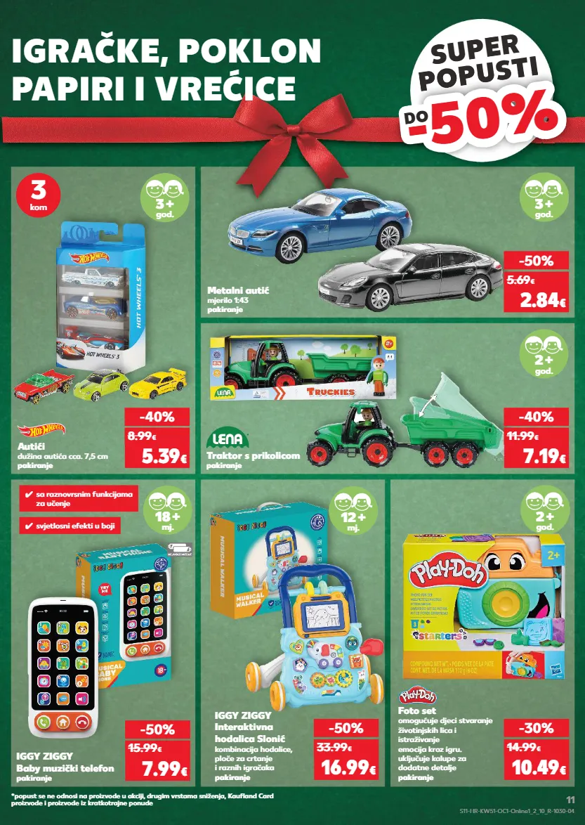 KRATKOTRAJNA PONUDA samo SUPER CIJENA KRATKOTRAJNA PONUDA KRATKOTRAJNA PONUDA samo samo SUPER CIJENA SUPER CIJENA KRATKOTRAJNA PONUDA SUPER CIJENA KRATKOTRAJNA PONUDA samo SUPER CIJENA KRATKOTRAJNA PONUDA samo SUPER CIJENA -00 % * DO IGRAČKE, POKLON PAPIRI I VREĆICE IGGY ZIGGY Baby muzički telefon pakiranje -50% 7.99 € 15.99 € IGGY ZIGGY Interaktivna hodalica Slonić kombinacija hodalice, ploče za crtanje i raznih igračaka pakiranje Foto set omogućuje djeci stvaranje životinjskih lica i istraživanje emocija kroz igru. uključuje kalupe za dodatne detalje pakiranje -50% -30% 16.99 € 10.49 € 33.99 € 14.99 € Metalni autić mjerilo 1:43 pakiranje -50% 2.84 € 5.69 € 2 + god. Traktor s prikolicom pakiranje -40% 7.19 € 11.99 € 2 + god. 18 + mj. 12 + mj. Autići dužina autića cca. 7,5 cm pakiranje -40% 5.39 € 8.99 € 3 + god. 3 + god. 3 kom *popust se ne odnosi na proizvode u akciji, drugim vrstama sniženja, Kaufland Card proizvode i proizvode iz kratkotrajne ponude SUPER POPUSTI POPUSTI -50% -50% DO ✓ sa raznovrsnim funkcijama za učenje ✓ svjetlosni efekti u boji S11-HR-KW51-OC1-Online1_2_10_R-1030-04 11
