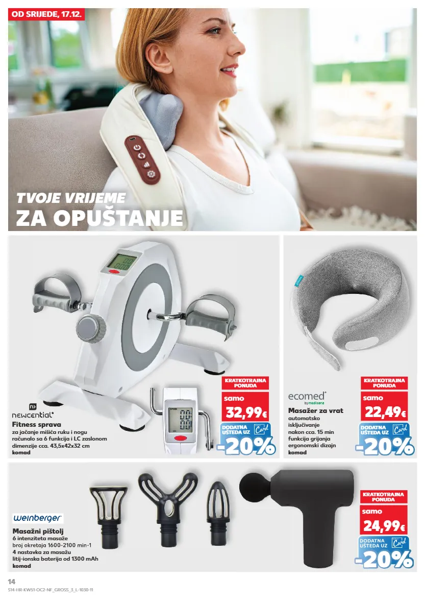od srijede, 17.12. fitness sprava za jačanje mišića ruku i nogu računalo sa 6 funkcija i lc zaslonom dimenzije cca. 43,5x42x32 cm komad kratkotrajna ponuda samo 32,99 € masažer za vrat automatsko isključivanje nakon cca. 15 min funkcija grijanja ergonomski dizajn komad tvoje vrijeme za opuštanje kratkotrajna ponuda samo 22,49 € dodatna ušteda uz - - 20 % 20 % dodatna ušteda uz - - 20 % 20 % kratkotrajna ponuda samo 24,99 € dodatna ušteda uz - 20 % masažni pištolj 6 intenziteta masaže broj okretaja 1600-2100 min-1 4 nastavka za masažu litij-ionska baterija od 1300 mah komad dodatna ušteda uz - - - - - broj okretaja 1600-2100 min-1 broj okretaja 1600-2100 min-1 s14-hr-kw51-oc2-nf_gross_3_l-1030-11 14