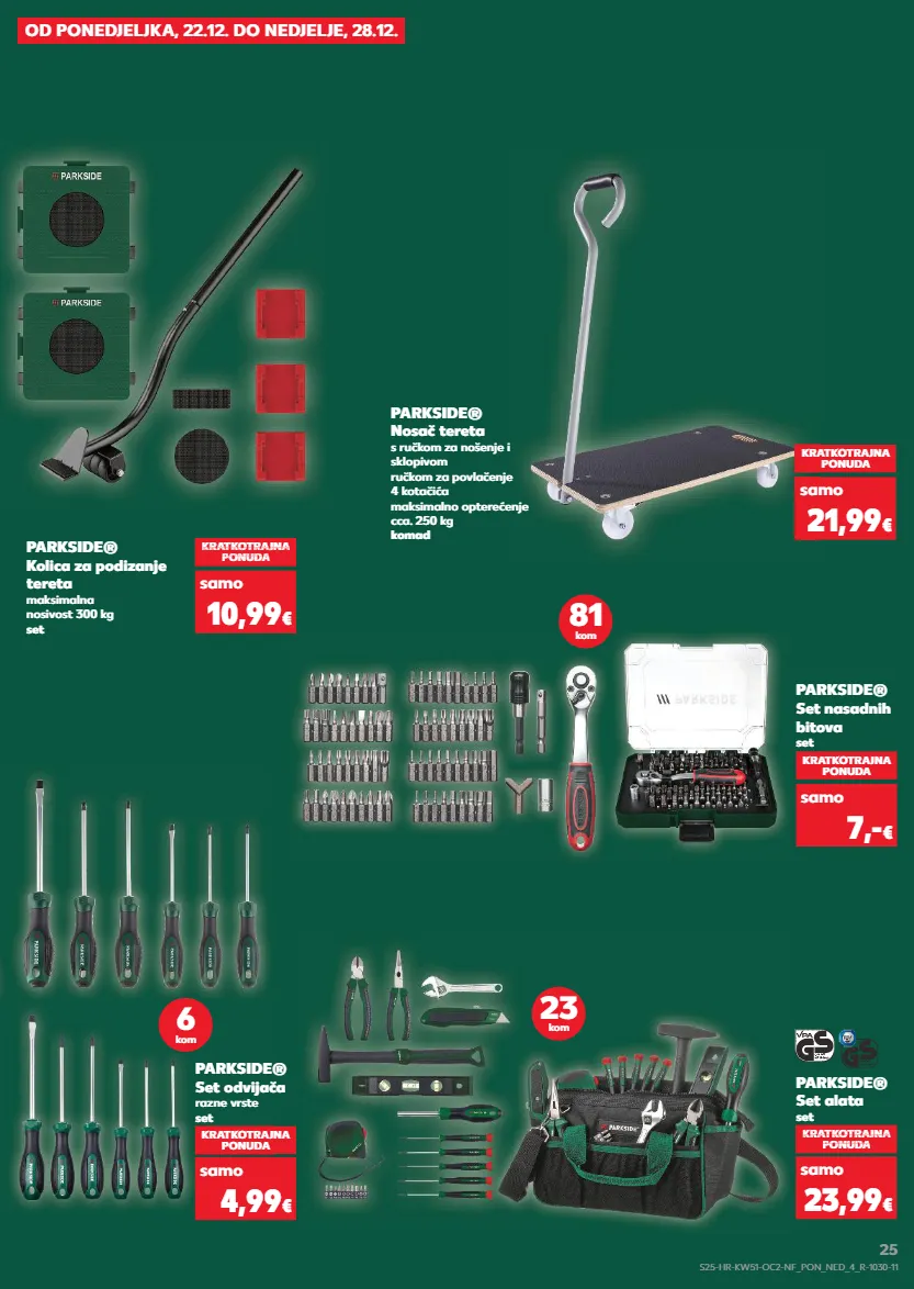 od ponedjeljka, 22.12. do nedjelje, 28.12. parkside® kolica za podizanje tereta maksimalna nosivost 300 kg set parkside® nosač tereta s ručkom za nošenje i sklopivom ručkom za povlačenje 4 kotačića maksimalno opterećenje cca. 250 kg komad kratkotrajna ponuda kratkotrajna ponuda samo samo kratkotrajna ponuda super cijena kratkotrajna super cijena kratkotrajna ponuda super cijena onuda 10,99 € 21,99 € parkside® set alata set parkside® set odvijača razne vrste set kratkotrajna ponuda kratkotrajna ponuda samo samo kratkotrajna ponuda super cijena kratkotrajna super cijena kratkotrajna ponuda super cijena onuda 23,99 € 4,99 € 23 kom parkside® set nasadnih bitova set kratkotrajna ponuda samo 7,- € 81 kom 6 kom s25-hr-kw51-oc2-nf_pon_ned_4_r-1030-11 25