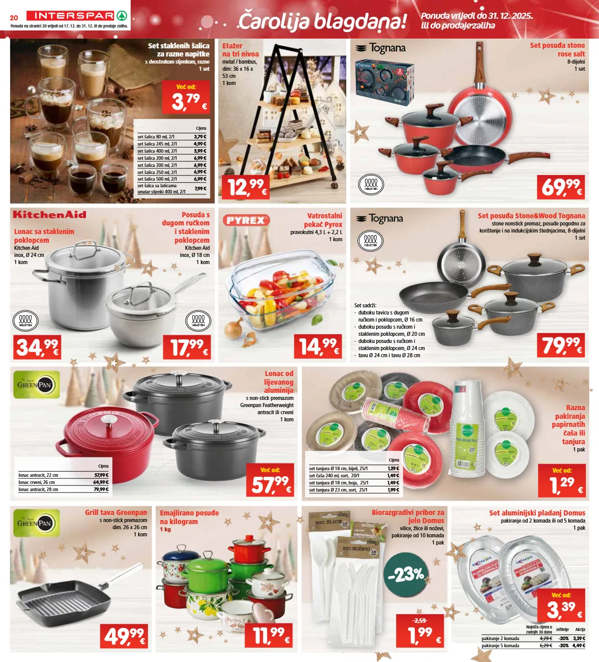 etažer na tri nivoa metal / bambus, dim: 36 x 16 x 53 cm 1 kom emajlirano posuđe na kilogram 1 kg 11 , 99 € 12 , 99 € 79 , 99 € 69 , 99 € 14 , 99 € 34 , 99 € 17 , 99 € 49 , 99 € set posuđa stone&wood tognana stone nonstick premaz, posuđe pogodno za korištenje i na indukcijskim štednjacima, 8-dijelni 1 set set sadrži: · duboku tavicu s dugom ručkom i poklopcem, ø 16 cm · duboku posudu s ručkom i staklenim poklopcem, ø 20 cm · duboku posudu s ručkom i staklenim poklopcem, ø 24 cm · tavu ø 24 cm i tavu ø 28 cm set posuđa stone rose salt 8-dijelni 1 set set staklenih šalica za razne napitke s dvostrukom stjenkom, razne 1 set 3 , 79 € već od: 57 , 99 € već od: 3 , 39 € već od: 1 , 29 € već od: lonac od lijevanog aluminija s non-stick premazom greenpan featherweight antracit ili crveni 1 kom grill tava greenpan s non-stick premazom dim. 26 x 26 cm 1 kom posuda s dugom ručkom i staklenim poklopcem kitchen aid inox, ø 18 cm 1 kom lonac sa staklenim poklopcem kitchen aid inox, ø 24 cm 1 kom vatrostalni pekač pyrex pravokutni 4,3 l + 2,2 l 1 kom razna pakiranja papirnatih čaša ili tanjura 1 pak biorazgradivi pribor za jelo domus vilice, žlice ili noževi, pakiranje od 10 komada 1 pak set aluminijski pladanj domus pakiranje od 2 komada ili od 5 komada 1 pak cijena set šalica 80 ml, 2/1 3,79 € set šalica 245 ml, 2/1 4,99 € set šalica 400 ml, 2/1 5,99 € set šalica 200 ml, 2/1 6,99 € set šalica 200 ml, 2/1 6,99 € set šalica 250 ml, 2/1 6,99 € set šalica 500 ml, 2/1 6,99 € set šalca sa laticama unutar stjenki 400 ml, 2/1 7,99 € cijena set tanjura ø 18 cm, bijeli, 25/1 1,29 € set čaša 240 ml, sort, 20/1 1,49 € set tanjura ø 18 cm, boja, 25/1 1,49 € set tanjura ø 23 cm, sort, 25/1 1,99 € cijena lonac antracit, 22 cm 57,99 € lonac crveni, 26 cm 64,99 € lonac antracit, 28 cm 79,99 € -23 % ponuda na stranici 20 vrijedi od x. x. do x. x. ili do prodaje zaliha. ponuda na stranici 20 vrijedi od 17. 12. do 31. 12. ili do prodaje zaliha. 20 najniža cijena u zadnjih 30 dana jeftinije akcija pakiranje 2 komada 4,29 € -20% 3,39 € pakiranje 5 komada 6,29 € -20% 4,49 € 1 , 99 € 2,59 čarolija blagdana! ponuda vrijedi do 31. 12. 2025. ili do prodaje zaliha