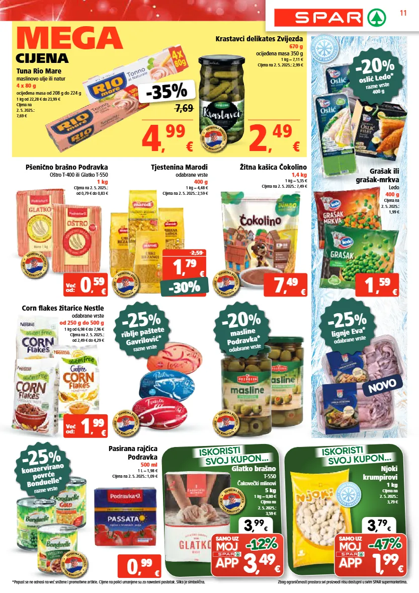 već od: € 0 , 59 59 već od: € 1 , 99 99 -30% -30% 2,59 € 1 , 7 79 9 € 7 , 49 49 € 1 , 5 59 9 € 0 , 99 99 - 25 % lignje eva* odabrane vrste - 20 % oslić ledo* razne vrste 400 g - 25 % riblje paštete gavrilović* razne vrste - 20 % masline podravka* odabrane vrste - 25 % konzervirano povrće bonduelle* razne vrste iskoristi svoj kupon... iskoristi svoj kupon... 3 , 79 € samo uz 1 , 99 € -47% -47% 3 , 99 € samo uz 3 , 49 € -12% -12% grašak ili grašak-mrkva ledo 400 g cijena na 2. 5. 2025.: 1,99 € mega cijena 2 , 49 € 4 , 99 € -35% -35% 7,69 tuna rio mare maslinovo ulje ili natur 4 x 80 g ocijeđena masa od 208 g do 224 g 1 kg od 22,28 € do 23,99 € cijena na 2. 5. 2025.: 7,69 € krastavci delikates zvijezda 670 g ocijeđena masa 350 g 1 kg = 7,11 € cijena na 2. 5. 2025.: 2,99 € pšenično brašno podravka oštro t-400 ili glatko t-550 1 kg cijena na 2. 5. 2025.: od 0,79 € do 0,83 € žitna kašica čokolino 1,4 kg 1 kg = 5,35 € cijena na 2. 5. 2025.: 7,49 € tjestenina marodi odabrane vrste 400 g 1 kg = 4,48 € cijena na 2. 5. 2025.: 2,59 € corn flakes žitarice nestle odabrane vrste od 250 g do 500 g 1 kg od 6,98 € do 7,96 € cijena na 2. 5. 2025.: od 2,49 € do 4,29 € pasirana rajčica podravka 500 ml 1 l = 1,98 € cijena na 2. 5. 2025.: 1,09 € h r v a t s k a k v a l i t e t a h r v a t s k a k v a l i t e t a h r v a t s k a k v a l i t e t a h r v a t s k a k v a l i t e t a h r v a t s k a k v a l i t e t a h r v a t s k a k v a l i t e t a h r v a t s k a k v a l i t e t a h r v a t s k a k v a l i t e t a h r v a t s k a k v a l i t e t a h r v a t s k a k v a l i t e t a h r v a t s k a k v a l i t e t a h r v a t s k a k v a l i t e t a h r v a t s k a k v a l i t e t a h r v a t s k a k v a l i t e t a glatko brašno t-550 čakovečki mlinovi 5 kg 1 kg = 0,80 € cijena na 2. 5. 2025.: 3,59 € njoki krumpirovi 1 kg cijena na 2. 5. 2025.: 3,79 € h r v a t s k a k v a l i t e t a h r v a t s k a k v a l i t e t a novo 11 *popust se ne odnosi na već snižene i promotivne artikle. cijene na polici umanjene su za navedeni postotak. slika je simbolična. zbog ograničenosti prostora svi proizvodi nisu dostupni u svim spar supermarketima.