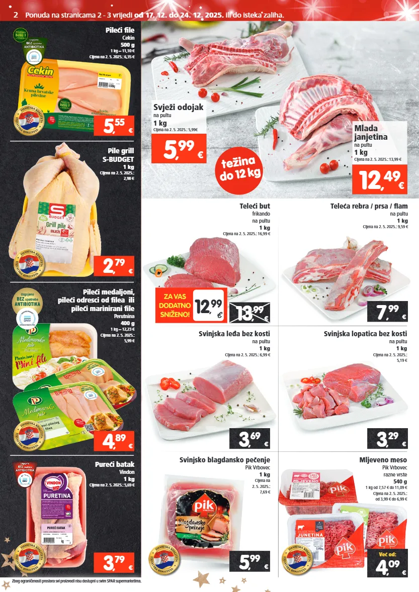 h r v a t s k a k v a l i t e t a h r v a t s k a k v a l i t e t a h r v a t s k a k v a l i t e t a h r v a t s k a k v a l i t e t a h r v a t s k a k v a l i t e t a h r v a t s k a k v a l i t e t a h r v a t s k a k v a l i t e t a h r v a t s k a k v a l i t e t a h r v a t s k a k v a l i t e t a h r v a t s k a k v a l i t e t a h r v a t s k a k v a l i t e t a h r v a t s k a k v a l i t e t a mlada janjetina na pultu 1 kg cijena na 2. 5. 2025.: 13,99 € 12 , 49 € svježi odojak na pultu 1 kg cijena na 2. 5. 2025.: 5,99€ 5 , 99 € pileći file cekin 500 g 1 kg = 11,10 € cijena na 2. 5. 2025.: 6,35 € pile grill s-budget 1 kg cijena na 2. 5. 2025.: 2,98 € € 5 , 55 € 2 , 79 pileći medaljoni, pileći odresci od filea ili pileći marinirani file perutnina 400 g 1 kg = 12,23 € cijena na 2. 5. 2025.: 5,99 € pureći batak vindon 1 kg cijena na 2. 5. 2025.: 5,69 € € 4 , 89 € 3 , 79 teleća rebra / prsa / flam na pultu 1 kg cijena na 2. 5. 2025.: 9,59 € teleći but frikando na pultu 1 kg cijena na 2. 5. 2025.: 16,99 € svinjsko blagdansko pečenje pik vrbovec 1 kg cijena na 2. 5. 2025.: 7,69 € svinjska leđa bez kosti na pultu 1 kg cijena na 2. 5. 2025.: 6,99 € mljeveno meso pik vrbovec razne vrste 540 g 1 kg od 7,57 € do 11,09 € cijena na 2. 5. 2025.: od 3,99 € do 6,99 € svinjska lopatica bez kosti na pultu 1 kg cijena na 2. 5. 2025.: 5,19 € € 7 , 99 € 5 , 99 € 3 , 69 € 3 , 29 € 13 , 99 težina do 12 kg € 4 , 09 već od: 12 , 99 zbog ograničenosti prostora svi proizvodi nisu dostupni u svim spar supermarketima. 2 ponuda na stranicama 2 - 3 vrijedi od 17. 12. do 24. 12. 2025. ili do isteka zaliha. zbog ograničenosti prostora svi proizvodi nisu dostupni u svim spar supermarketima.