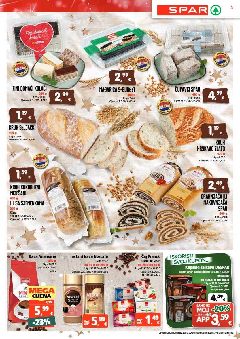 -23% -23% 7,79 mega cijena € 5 , 99 99 kava anamaria 400 g 1kg = 14,98 € cijena na 2. 5. 2025.: 7,79 € instant kava nescafé razne vrste od 95 g do 200 g 1 kg d 52,58 € do 74,50 € cijena na 2. 5. 2025.: 7,49 € do 14,99 € čaj franck odabrane vrste od 20 g do 60 g 1 kg od 33,17 € do 74,50 € cijena na 2. 5. 2025.: od 1,99 € do 2,49 € 1 , 19 € 1 , 59 € 1 , 19 € 2 , 99 € 2 , 49 € 2 , 99 € 4 , 59 € već od: € 5 , 99 99 kruh seljački 405 g 1 kg = 2,94 € cijena na 2. 5. 2025.: 1,49 € mađarica s-budget 400 g 1 kg = 7,48 € cijena na 2. 5. 2025.: 4,39 € čupavci spar 480 g 1 kg = 9,56 € cijena na 2. 5. 2025.: 5,79 € fini domaći kolači 290 g 1 kg = 10,31 € cijena na 2. 5. 2025.: 4,29 € orahnjača ili makovnjača spar 500 g 1 kg = 4,98 € cijena na 2. 5. 2025.: 2,39 € kruh kukuruzni miješani 600 g ili sa sjemenkama 500 g klara 1 kg od 2,65 € do 3,18 € cijena na 2. 5. 2025.: 2,39 € kruh hrskavo zlato 420 g 1 kg = 2,83 € cijena na 2. 5. 2025.: 1,19 € h r v a t s k a k v a l i t e t a h r v a t s k a k v a l i t e t a h r v a t s k a k v a l i t e t a h r v a t s k a k v a l i t e t a h r v a t s k a k v a l i t e t a h r v a t s k a k v a l i t e t a h r v a t s k a k v a l i t e t a h r v a t s k a k v a l i t e t a h r v a t s k a k v a l i t e t a h r v a t s k a k v a l i t e t a 4 , 49 € iskoristi svoj kupon... samo uz 3 , 59 € -20% -20% kapsule za kavu despar razne vrste, kompatibilno sa dolce gusto aparatima od 100,8 g do 168 g 1 kg od 26,73 € do 44,54 € cijena na 2. 5. 2025.: od 3,89 € do 3,99 € već od: € 1 , 49 49 5 zbog ograničenosti prostora svi proizvodi nisu dostupni u svim spar supermarketima.