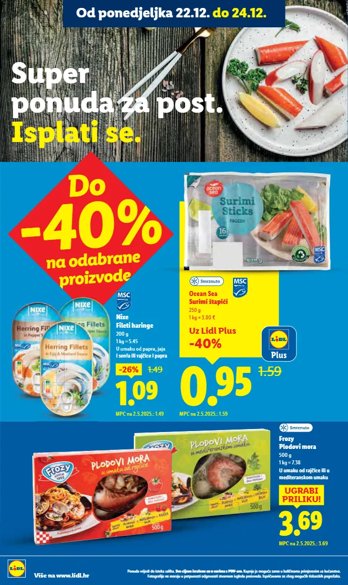 Super ponuda za post. .óìÒúǿó¨ı Uz Lidl Plus -40% _iÎÊ 1.59 Ocean Sea ]ÿïÀØÀõúìÀÀ 250 g 1 kg = 3.80 € MPC na 2.5.2025.: 1.59 biËÎ UGRABI PRILIKU! MPC na 2.5.2025.: 3.69 Frozy Plodovi mora 500 g 1 kg = 7.38 iÿØÏÿà¤ïÌ À¨ÀÒÀÿ ب¤Àú¨ïÙóÏàØÿØÏÿ `iÅÎ -26% 1.49 MPC na 2.5.2025.: 1.49 Nixe Fileti haringe 200 g 1 kg = 5.45 U umaku od papra, jaja Àó¨Ù³ÀÒÀïÌ À¨Àììï Do -40% na odabrane proizvode ǭàȕȡǼDzĊȝǿȋ¨ǼǿǼàǿóú¨ÏDzėDzȎǿ½Dzı ]Ċ¨ǿȋ¨ȕ¨ǿėȝDzę¨ȕ¨óȡȡ¨ȡȝǿȔDzóǭǞtƖàȔı ;ȡȜȕȋDzȋ¨Ȕà¸ȡDzóDzȔàȡÏàȎǿ ǿȕDzȔDzȜȝǿȔȋ¨ȝ¨ȕǿȔėDzÏȡDzȕóúĊàı %àúà¸ȝDz³ǿȋ¨ȕ¨ȔàȝDzȋȡȡȜàúȜȡȕàóúǿàǼ¸àĊDzȝDzúǿóúĊDzȝȕàȔǿė¸Ȏ¨ǼȡȜȝàǿėĊàǼDzıǢóȜȝǿ DzĊDzȔàó¨ėà¸Ȕà¸ȡǿ½úǿóÏDzȝóÏǿ½Ȝà¸ȝ¨õDzÏDzı Više na www.lidl.hr Od ponedjeljka 22.12. do 24.12.