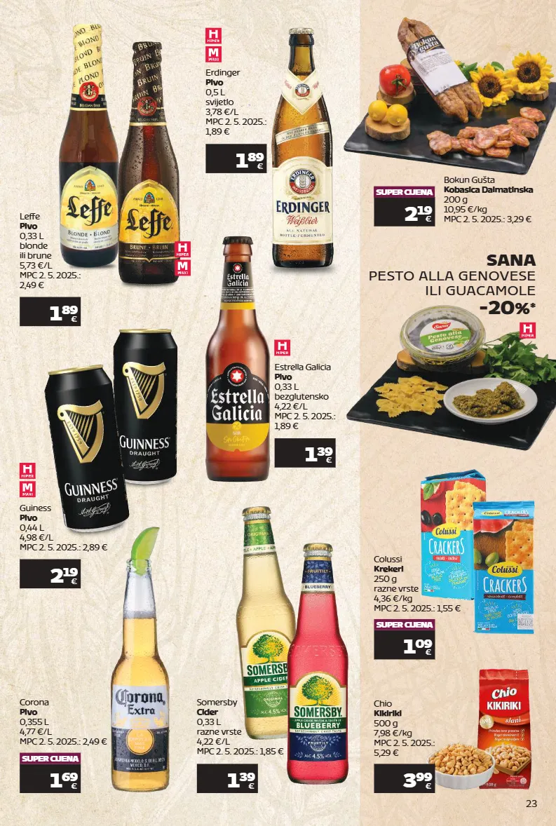 23 1 09 super cijena € colussi krekeri 250 g razne vrste 4,36 €/kg mpc 2. 5. 2025.: 1,55 € 3 99 € chio kikiriki 500 g 7,98 €/kg mpc 2. 5. 2025.: 5,29 € 1 89 € erdinger pivo 0,5 l svijetlo 3,78 €/l mpc 2. 5. 2025.: 1,89 € 2 19 € guiness pivo 0,44 l 4,98 €/l mpc 2. 5. 2025.: 2,89 € 2 19 € bokun gušta kobasica dalmatinska 200 g 10,95 €/kg mpc 2. 5. 2025.: 3,29 € super cijena sana pesto alla genovese ili guacamole -20 % * 1 69 super cijena € corona pivo 0,355 l 4,77 €/l mpc 2. 5. 2025.: 2,49 € 1 89 € leffe pivo 0,33 l blonde ili brune 5,73 €/l mpc 2. 5. 2025.: 2,49 € 1 39 € somersby cider 0,33 l razne vrste 4,22 €/l mpc 2. 5. 2025.: 1,85 € 1 39 € estrella galicia pivo 0,33 l bezglutensko 4,22 €/l mpc 2. 5. 2025.: 1,89 €