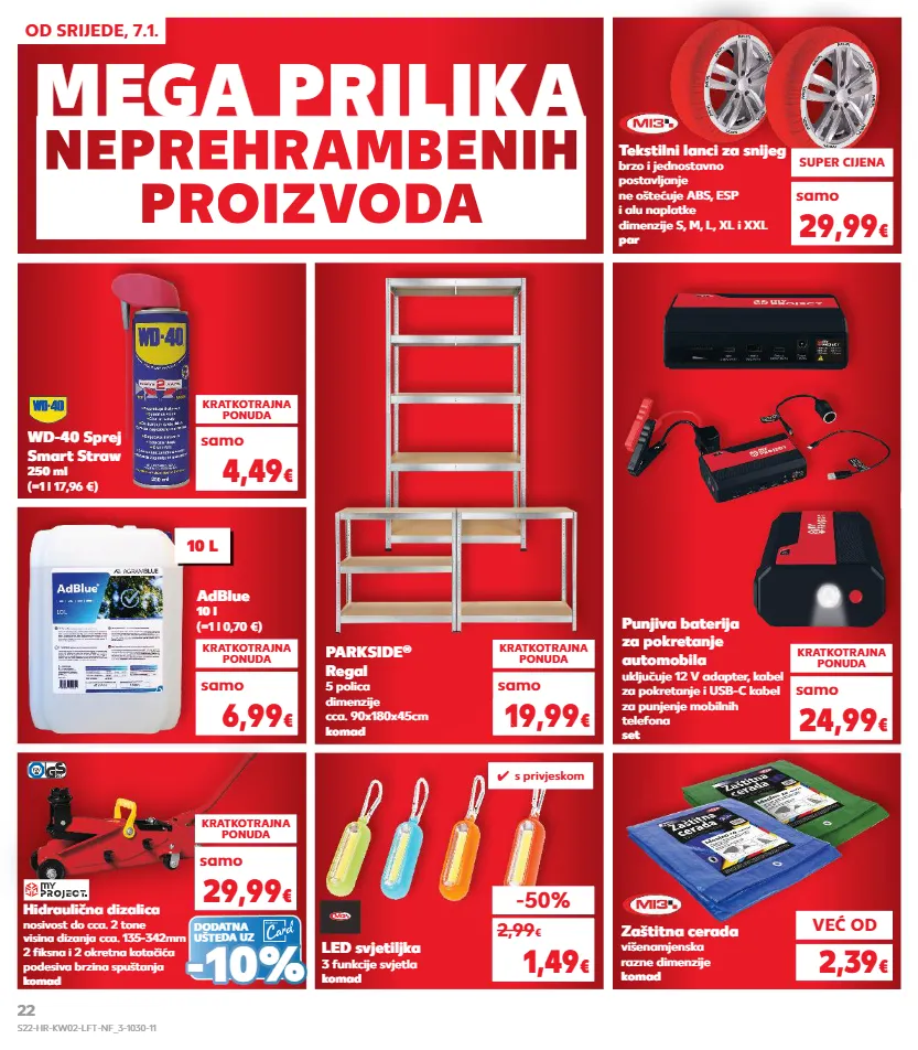 kratkotrajna ponuda kratkotrajna ponuda mega prilika neprehr ambenih pr oiz v od a od srijede, 7.1. već od 2,39 € adblue 10 l (=1 l 0,70 €) parkside ® regal 5 polica dimenzije cca. 90x180x45cm komad punjiva baterija za pokretanje automobila uključuje 12 v adapter, kabel za pokretanje i usb-c kabel za punjenje mobilnih telefona set kratkotrajna ponuda kratkotrajna ponuda kratkotrajna ponuda 6,99 € 19,99 € 24,99 € samo samo samo tekstilni lanci za snijeg brzo i jednostavno postavljanje ne oštećuje abs, esp i alu naplatke dimenzije s, m, l, xl i xxl par super cijena 29,99 € 19,99 led svjetiljka 3 funkcije svjetla komad -50% 1,49 € 2,99 € samo hidraulična dizalica nosivost do cca. 2 tone visina dizanja cca. 135-342mm 2 fiksna i 2 okretna kotačića podesiva brzina spuštanja komad zaštitna cerada višenamjenska razne dimenzije komad wd-40 sprej smart straw 250 ml (=1 l 17,96 €) kratkotrajna ponuda 4,49 € kratkotrajna ponuda 29,99 € samo samo 10 l dodatna ušteda uz - - 10% 10% ✓ s privjeskom s22-hr-kw02-lft-nf_3-1030-11 22