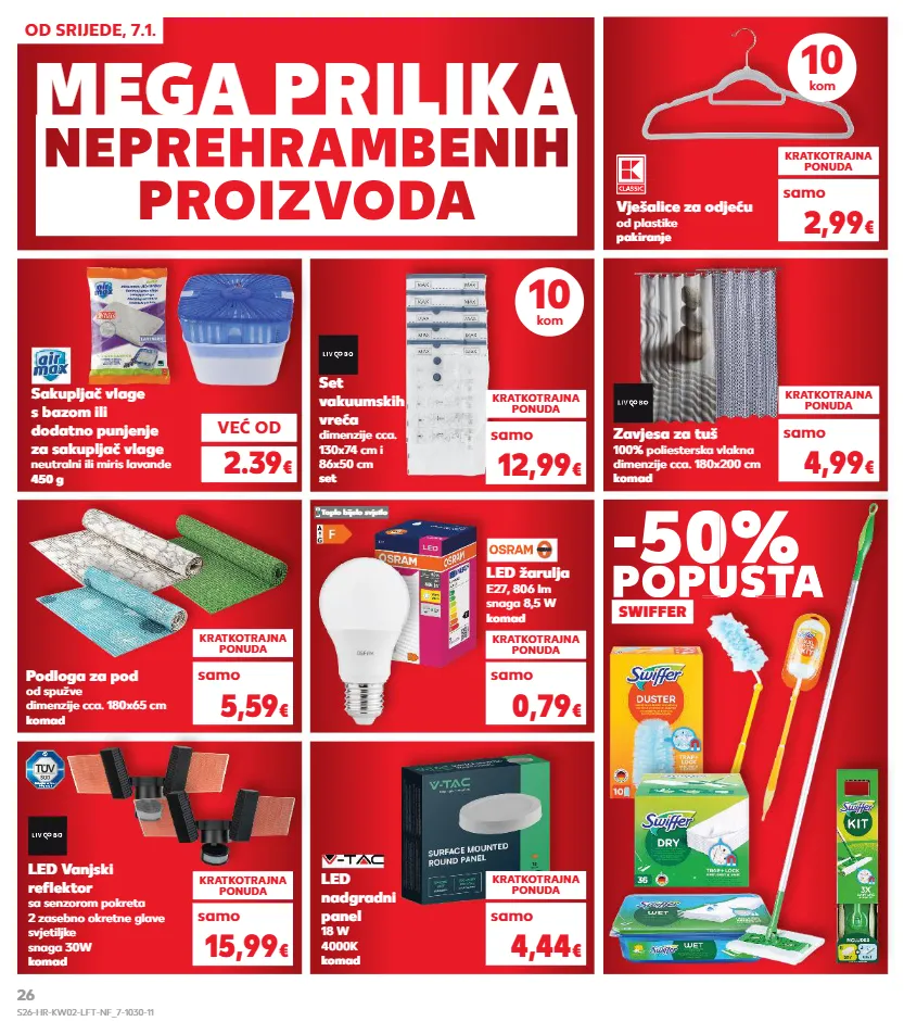 mega prilika neprehr ambenih pr oiz v od a od srijede, 7.1. set vakuumskih vreća dimenzije cca. 130x74 cm i 86x50 cm set kratkotrajna ponuda 12,99 € samo vješalice za odjeću od plastike pakiranje kratkotrajna ponuda 2,99 € samo zavjesa za tuš 100% poliesterska vlakna dimenzije cca. 180x200 cm komad kratkotrajna ponuda 4,99 € led žarulja e27, 806 lm snaga 8,5 w komad toplo bijelo svjetlo kratkotrajna ponuda 0,79 € samo samo led vanjski reflektor sa senzorom pokreta 2 zasebno okretne glave svjetiljke snaga 30w komad led nadgradni panel 18 w 4000k komad kratkotrajna ponuda kratkotrajna ponuda 15,99 € 4,44 € samo samo sakupljač vlage s bazom ili dodatno punjenje za sakupljač vlage neutralni ili miris lavande 450 g podloga za pod od spužve dimenzije cca. 180x65 cm komad kratkotrajna ponuda 5,59 € samo -50% popusta swiffer popusta -50% popusta popusta popusta popusta 10 kom 10 kom već od 2.39 € s26-hr-kw02-lft-nf_7-1030-11 26