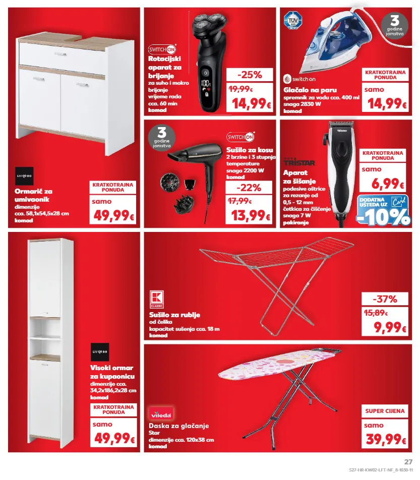 kratkotrajna ponuda kratkotrajna ponuda kratkotrajna ponuda kratkotrajna ponuda glačalo na paru spremnik za vodu cca. 400 ml snaga 2830 w komad 3 3 kratkotrajna ponuda 14,99 € samo rotacijski aparat za brijanje za suho i mokro brijanje vrijeme rada cca. 60 min komad -25% 14,99 € 19,99 € aparat za šišanje podesive oštrice za rezanje od 0,5 - 12 mm četkica za čišćenje snaga 7 w pakiranje kratkotrajna ponuda -22% 13,99 € 6,99 € ormarić za umivaonik dimenzije cca. 58,1x54,5x28 cm komad kratkotrajna ponuda 49,99 € samo 17,99 € samo daska za glačanje star dimenzije cca. 120x38 cm komad visoki ormar za kupaonicu dimenzije cca. 34,2x186,2x28 cm komad sušilo za rublje od čelika kapacitet sušenja cca. 18 m komad kratkotrajna ponuda samo super cijena -37% 49,99 € 9,99 € 39,99 € samo 15,89 € sušilo za kosu 2 brzine i 3 stupnja temperature snaga 2200 w komad daska za glačanje dodatna ušteda uz - - 10% 10% s27-hr-kw02-lft-nf_8-1030-11 27